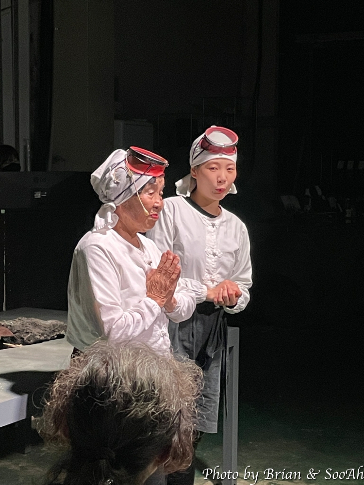 그 이후에는 실제 연극의 내용의 소재가 된 일기를 직접 쓰셨던 해녀 분의 이야기를 듣고 질의 응답하는 시간이 있었습니다. 개인적으로도 역사학도를 꿈꿨다 보니, 제주(탐라국)에서의 삶이 대대로 편하지만은 않았다는 건 잘 알고 있는데요... 원래는 아예 다른 소국이었다가 우리에게 편입된 이후에는, 특히 조선시대에는 섬을 떠나는 것은 허용되지 않고 진상품만 바쳐 올리고, 대역죄인들이나 정치범들이 위리안치되어 오는 귀양처였던 곳. 그리고는 일본과 가깝다는 이유로 일본이 대륙으로의 야욕을 부릴 때 전초기지로 쓰여서, 여러 자연 경관에 몹쓸 짓을 하고 간 곳. 그리고는 맞이한 해방에서 38선의 최전방도 아닌데 사상투쟁의 결과를 가장 아프게 겪어야 했던 곳.....이라는 게 해녀 분의 인생사에 점철되어 이야기되는데 참 가슴 아픈 얘기였습니다.