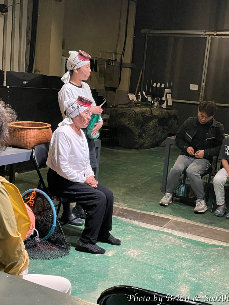 그 이후에는 실제 연극의 내용의 소재가 된 일기를 직접 쓰셨던 해녀 분의 이야기를 듣고 질의 응답하는 시간이 있었습니다. 개인적으로도 역사학도를 꿈꿨다 보니, 제주(탐라국)에서의 삶이 대대로 편하지만은 않았다는 건 잘 알고 있는데요... 원래는 아예 다른 소국이었다가 우리에게 편입된 이후에는, 특히 조선시대에는 섬을 떠나는 것은 허용되지 않고 진상품만 바쳐 올리고, 대역죄인들이나 정치범들이 위리안치되어 오는 귀양처였던 곳. 그리고는 일본과 가깝다는 이유로 일본이 대륙으로의 야욕을 부릴 때 전초기지로 쓰여서, 여러 자연 경관에 몹쓸 짓을 하고 간 곳. 그리고는 맞이한 해방에서 38선의 최전방도 아닌데 사상투쟁의 결과를 가장 아프게 겪어야 했던 곳.....이라는 게 해녀 분의 인생사에 점철되어 이야기되는데 참 가슴 아픈 얘기였습니다.