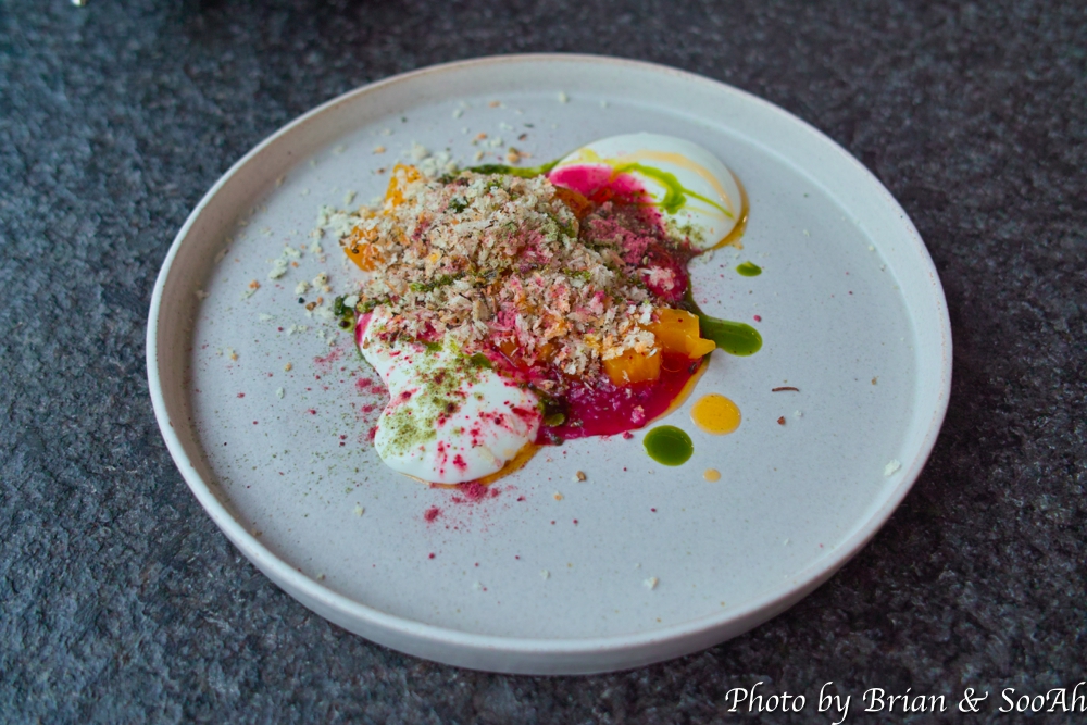 도너츠 모양으로 된 1층에서 일정 각도의 부채꼴에 해당되는 자리에 있는 '넘은 봄'에 들어와서는 '청굴물'이 잘 보이는 자리에 앉아서는,디너 코스요리를 먹었습니다. 제주 특산 농수산물일 주가 되고, 거기에 국산 농산물들을 잘 조화시켜서 만든 여러가지 독특한 음식들이 나왔는데, 플레이팅도 이쁘고, 맛도 괜찮아서, 나름 괜찮았습니다. 다녀온지 너무 오래되서 각각의 Plate 가 뭐였는지 정확히는 기억이 안나는데, 개인적으로는 톳을 이용해 만든 면으로 된 요리가 식감도 그렇고, 가장 맘에 들었던 기억이 있네요.