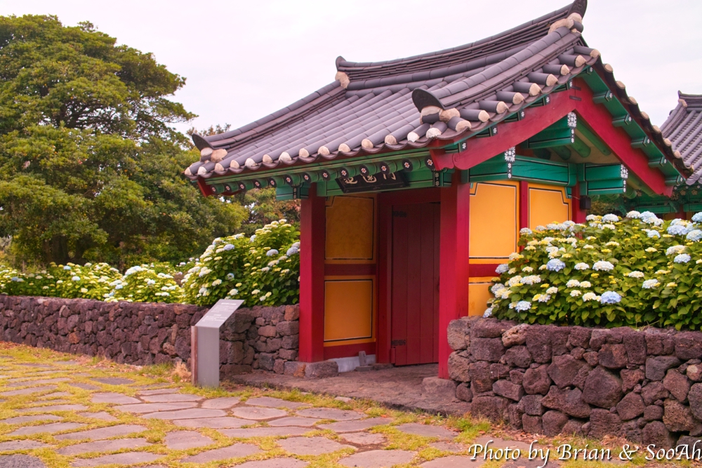 연못을 따라 돌아가니, 좀 더 안쪽으로 넓은 들판/잔디밭이 나오고... 거길 돌아 들어가니 제주 특유의 돌담길이 나오면서 안쪽에 한옥 건물이 나오더군요. 정확히 뭔지는 기억이 안 나는데 사진 찍기 좋아서 좀 찍고 나왔네요.