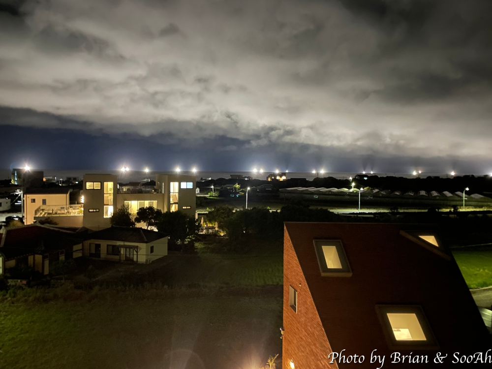 근데 여기가 밤에 나오니 밤바다를 바라 볼 수 있는... (물론 모기도 있지만) 운치 있는 곳으로 변하더군요. 저녁 식사를 포장해온 고등어회를 먹고 난 다음에 바람을 쐴 겸 나와 봤더니, 평대 바다 너머로 등을 켜놓고는 한치잡이를 하는 일렬로 배치되어 작업중인 어선들을 보자니 '아 정말 제주에 있구나' 하는 느낌도 들고 너무 좋았습니다.