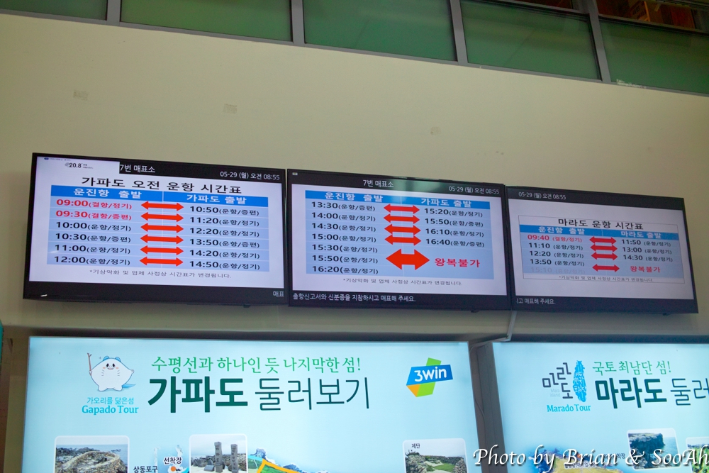 정기여객선이 출항하는 운진항에 도착해 봤지만, 배들이 전부 취소되거나 지연 처리되고 있는 중이더군요. 다른 일정이 없긴 했지만, 배를 타고 들어갔다가 또 나올 때 비바람으로 못 나오게 되는 걱정도 해야 했기에. (다음날이 집으로 돌아가는 날이었습니다.) 결국은 정기여객선은 다음에 타서 근처 섬으로 가보는 걸 해보기로 하고, 아쉽지만 정기여객선 사진만 찍고 왔네요..