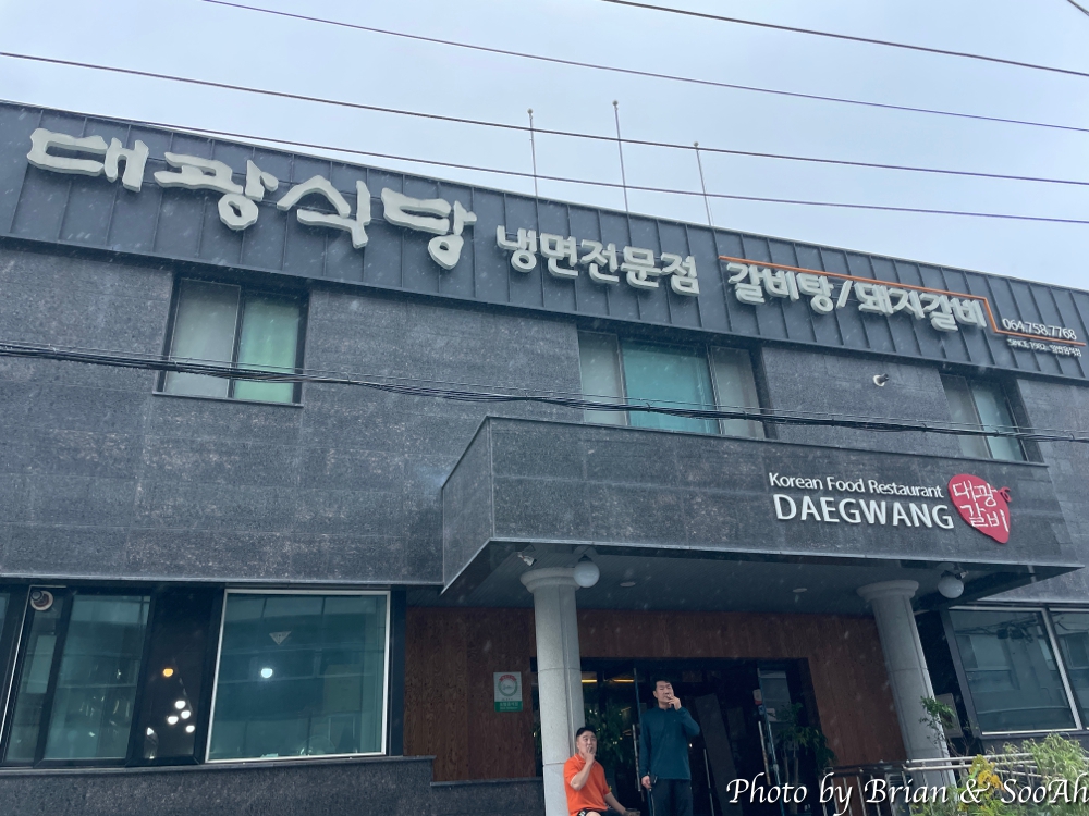 날씨도 계속 좋지 않고, 비행기 출발이 남은 시간이 어디 갔다 오기도 애매하고 해서 뭘할까 하다가, 일단 아점이자 점저로 제주도에서 유명한 냉면집을 가보자는 생각에, 검색을 통해서 '대광식당'이라는 곳에 갔습니다. 가게로 접근하는 길이 좀 좁아서 힘들었지만, 주차는 쉽게 했는데요... 가게가 엄청 커서, 아 엄청 인기 있는 맛집이겠구나 했습니다.