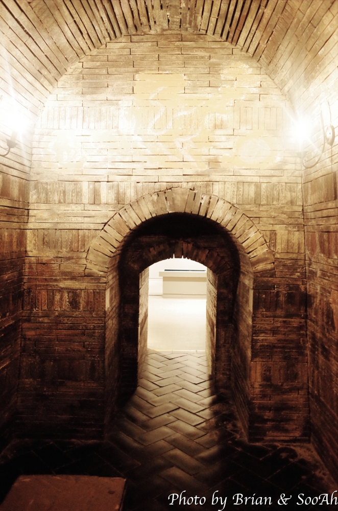 주차장에서 바로 직선길로 가는 게 아니라 큰길 따라 꽤 돌아서 가니 왕릉.... 고분군....의 입구가 나왔고 입구를 지나자마자 바로 무녕왕릉이 보였습니다. 그리고는 이 일대인 송산리고분군 전시관 안으로 들어가서, 관련된 내용이랑 무녕왕릉 모형을 통해서 실제 묘실 안을 들어가는 체험도 해봤네요.