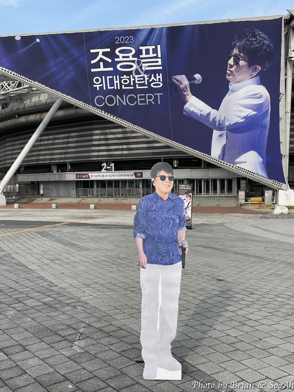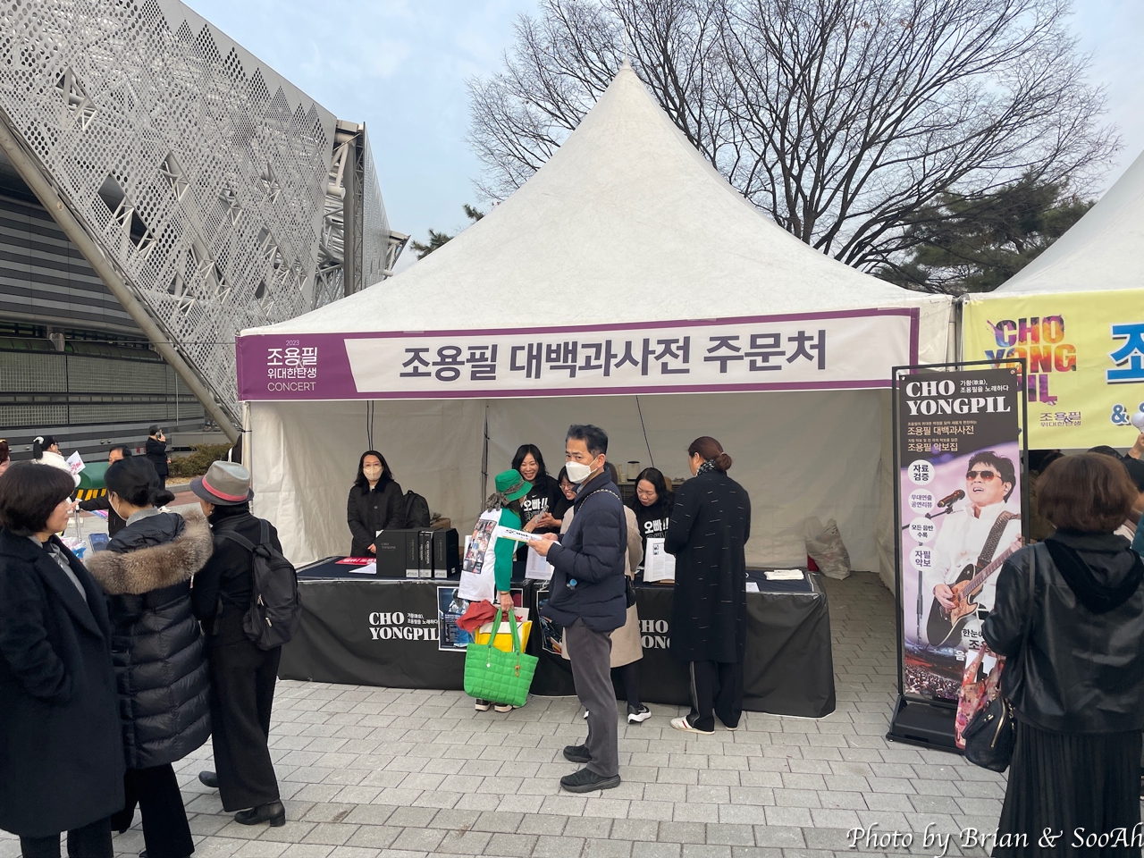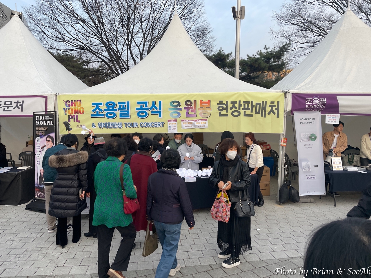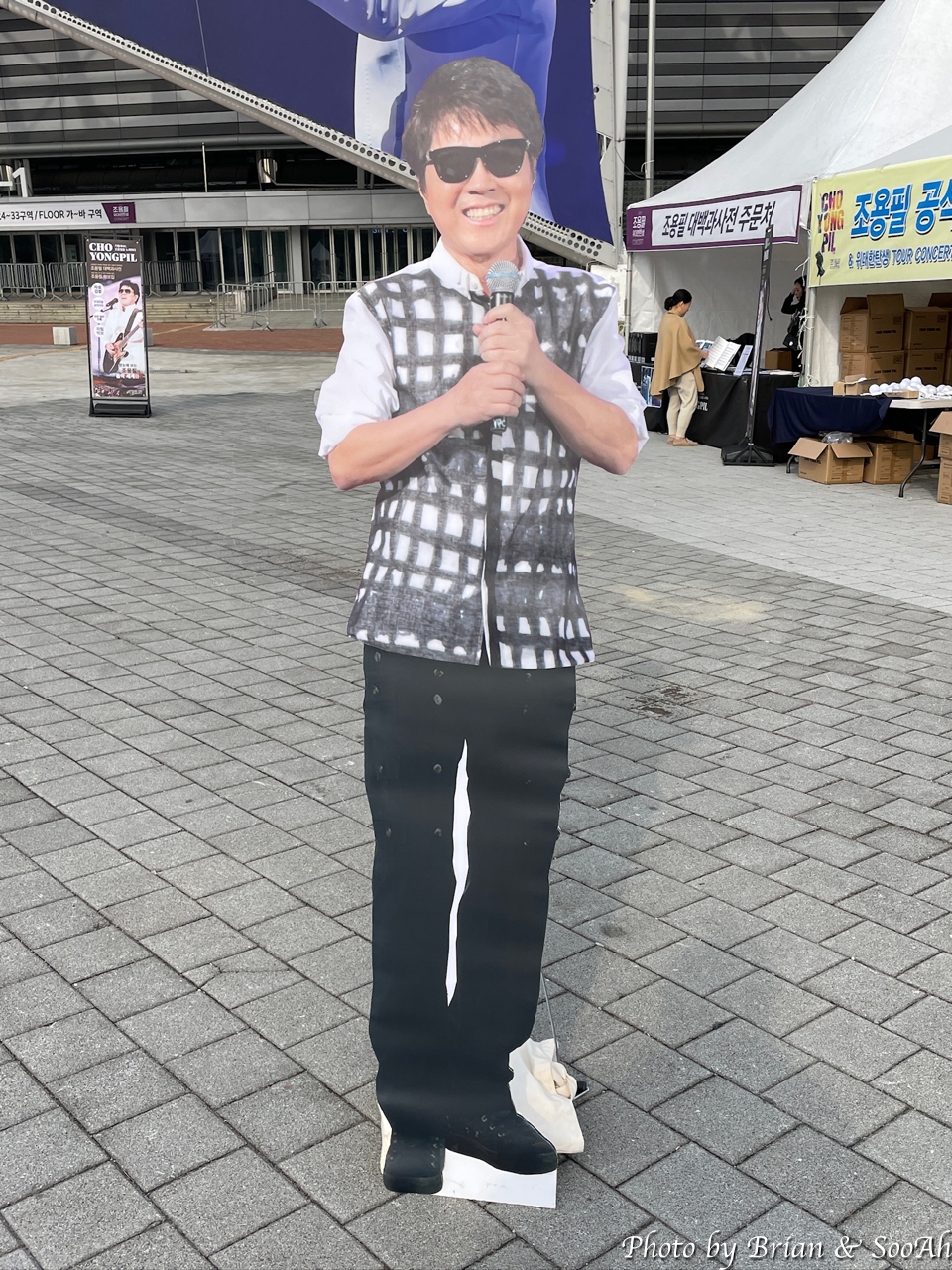 오후 6시인가 어쨌든 저녁 공연이었지만, 워낙 많이들 오는 공연이고, 올림픽공원의 주차가 어려운 걸 알다 보니 점심부터 와서 주차를 하고는 근처를 배회했었던. 아직 팬들이 많이 오진 않고, 조용필 공식 팬클럽(무려 3군데임)별로 만들어진 부스에서 이런저런 걸 준비하시는 분들과 관련된 상품을 파는 부스 등의 준비로 분주했을 뿐. 덕분에 형님 입간판을 독점해서 찍을 수 있었던 얼마 안되는 시간... (^^)
