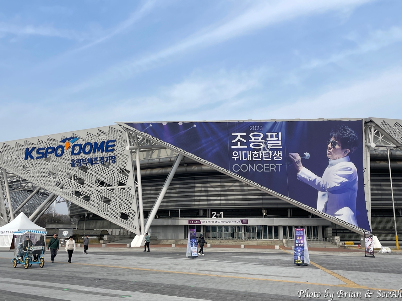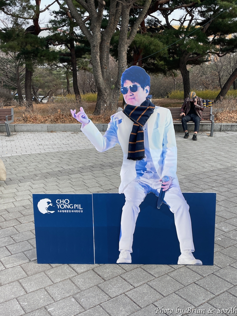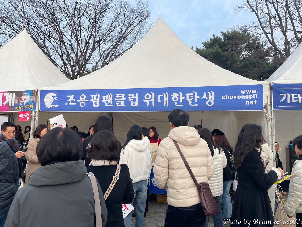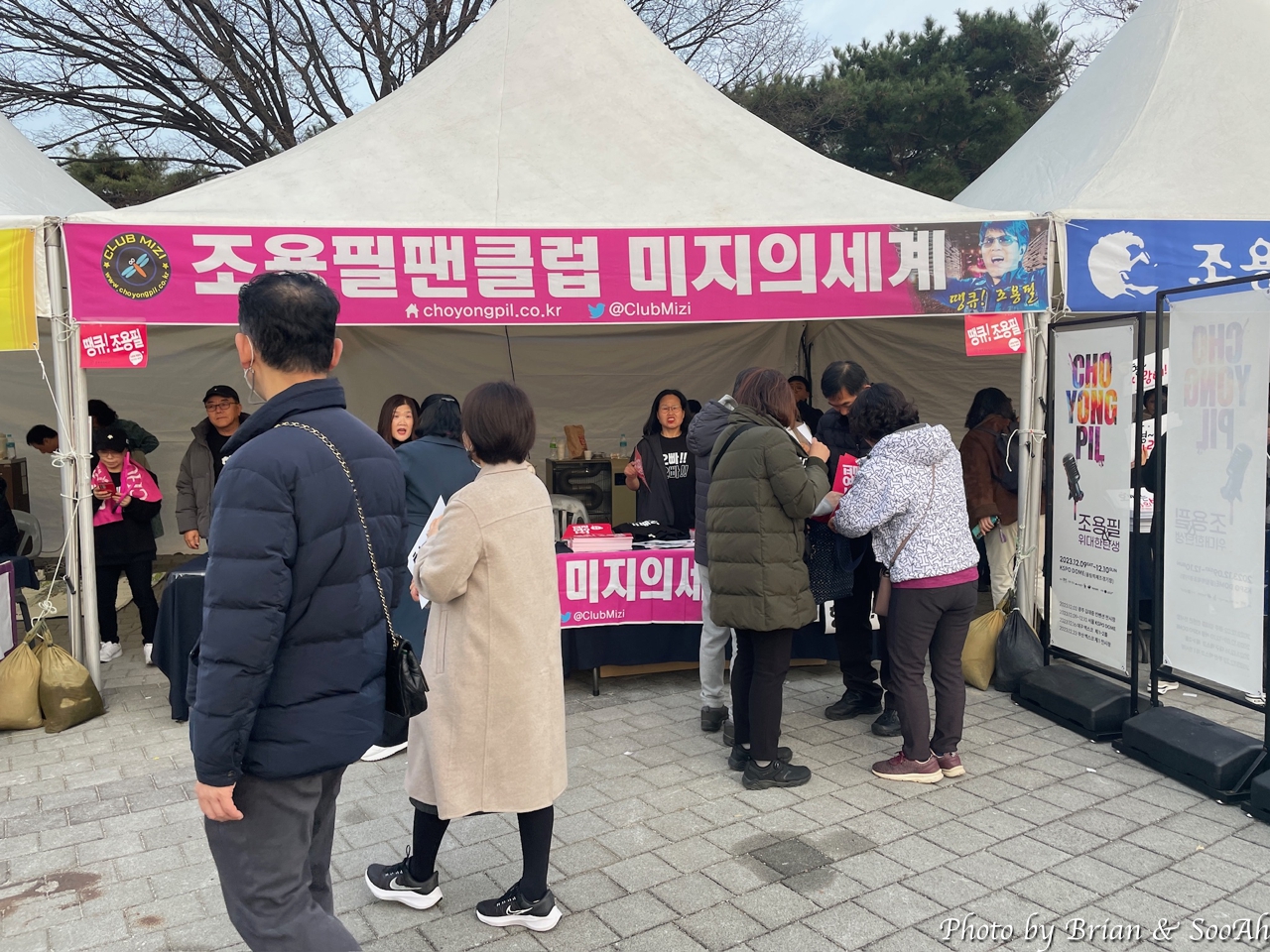 오후 6시인가 어쨌든 저녁 공연이었지만, 워낙 많이들 오는 공연이고, 올림픽공원의 주차가 어려운 걸 알다 보니 점심부터 와서 주차를 하고는 근처를 배회했었던. 아직 팬들이 많이 오진 않고, 조용필 공식 팬클럽(무려 3군데임)별로 만들어진 부스에서 이런저런 걸 준비하시는 분들과 관련된 상품을 파는 부스 등의 준비로 분주했을 뿐. 덕분에 형님 입간판을 독점해서 찍을 수 있었던 얼마 안되는 시간... (^^)