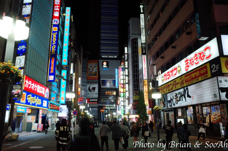 일본 신주쿠 숙소 도착이 8시가 넘어서 늦은 식사 겸 환영회식이 11시가 넘어서 끝나는 바람에 숙소에 오니 거의 12시가 다 되어 다음날이 되어 가더군요. 근데, 개인적으론 잠도 안 오고, 또 숙소가 신주쿠인지라, 나름 쇼핑으로 유명한 구역이다 보니.... 조금 무섭긴 했지만, 그래도 일본어 조금 한다고 큰 맘 먹고, 숙소를 나섰습니다. 숙소가 있는 니시-신주쿠(신주쿠 서쪽)는 고층 빌딩이 많은 사무공간이라 저녁 시간에는 불 꺼진 사무실들만 있는 반면에, 히가시-신주쿠(신주쿠 동쪽)은 유흥가 포함 여러 쇼핑몰들이 잔뜩 있다 보니 자정이 넘은 시간에도 불야성이더군요.