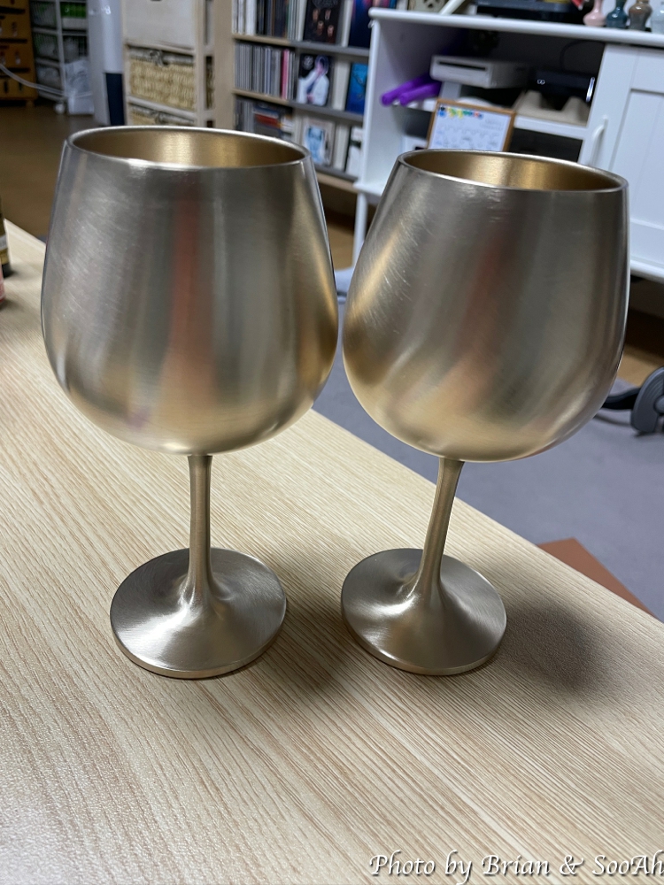 W 펀딩 사이트에서 신기하게도 유기로 된 '와인잔'을 펀딩하길래, 그냥 혹해서 질러 버렸습니다. 도착해서 사용해 보니 생각보다 많이 무거워서 실용성이 조금 떨어지긴 하지만, 그래도 영롱한 유기 빛깔에 그냥 만족하고 있답니다.