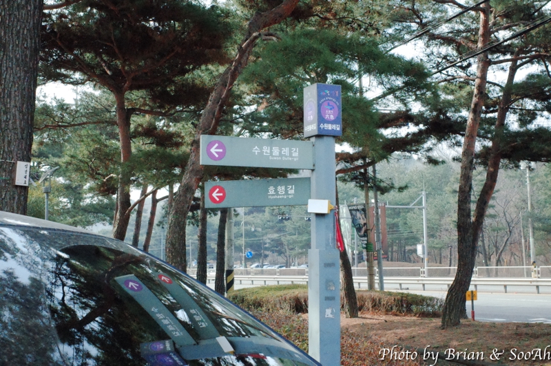 그렇게 걷다 보니, 표지판도 끝나고 수원시 경계까지 도착하면서 무려 13.3 Km를 식사시간 빼고 약 3시간 30분 정도 걸으면서, 첫 트레킹을 무사히 끝냈네요. (발바닥이 조금 아프긴 했어요.)
