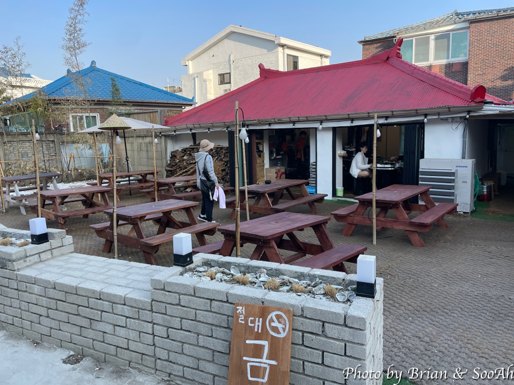 벚꽃 탐방을 다니다가, 식사 때가 되어서, 많은 인파를 뚫고 조금 일찍 저녁을 먹으러 갔습니다. 주말에는 야외도 좌석을 채우는데, 이 날은 평일 저녁이라 건물 안에만 손님을 받더군요.