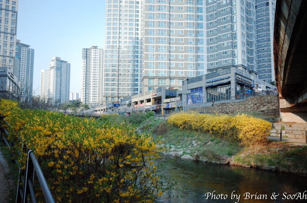 그렇게 광교카페거리가 끝나니, 다시 다리 밑을 지나서는 광교역사공원 옆 하천길을 계속 따라서 가니까 광교역까지의 광교대학로로 걷게 되고, 결국 경기대 안으로 다시 돌아오는 코스였습니다. 이 길은... 시기가 시긴지라 조그만 날벌레가 많아서, 사진을 많이 못 찍었네요.