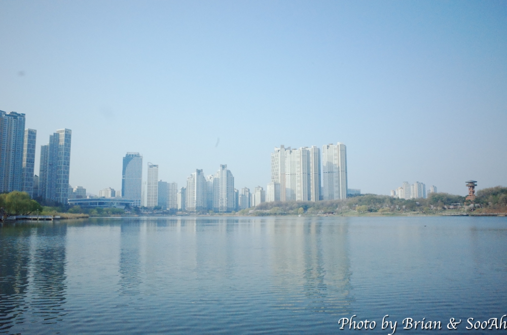 그렇게 언덕을 오르락 내리락 하다 보니, 멀리 원천호수가 보이더군요. 그렇게 원천호수로 내려와서는 원천호수 길을 따라 걸었습니다.