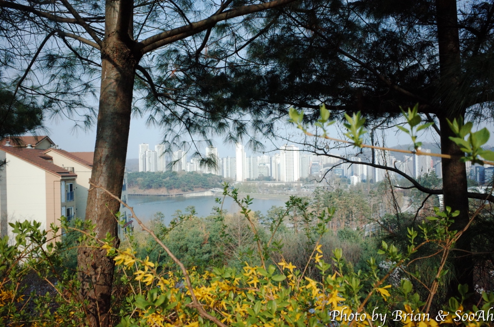 그렇게 언덕을 오르락 내리락 하다 보니, 멀리 원천호수가 보이더군요. 그렇게 원천호수로 내려와서는 원천호수 길을 따라 걸었습니다.