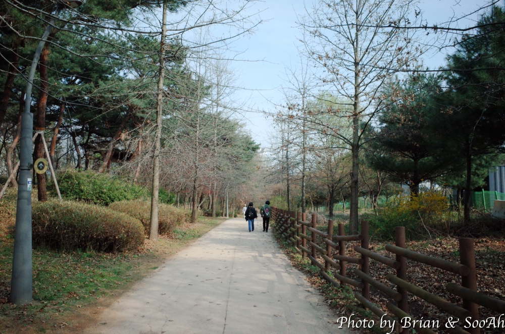 그렇게 광교카페거리가 끝나니, 다시 다리 밑을 지나서는 광교역사공원 옆 하천길을 계속 따라서 가니까 광교역까지의 광교대학로로 걷게 되고, 결국 경기대 안으로 다시 돌아오는 코스였습니다. 이 길은... 시기가 시긴지라 조그만 날벌레가 많아서, 사진을 많이 못 찍었네요.