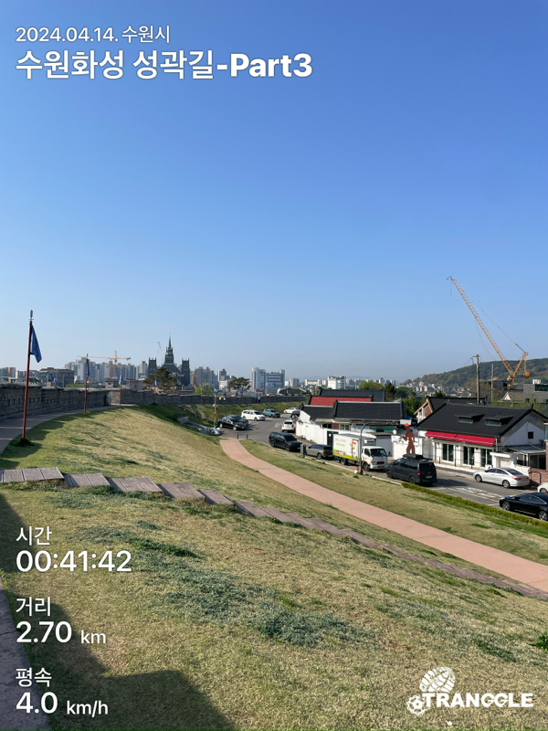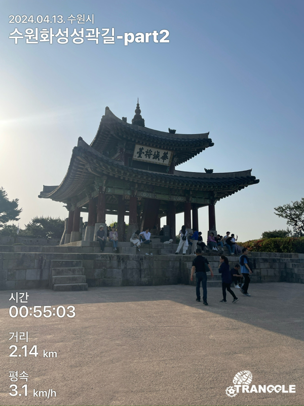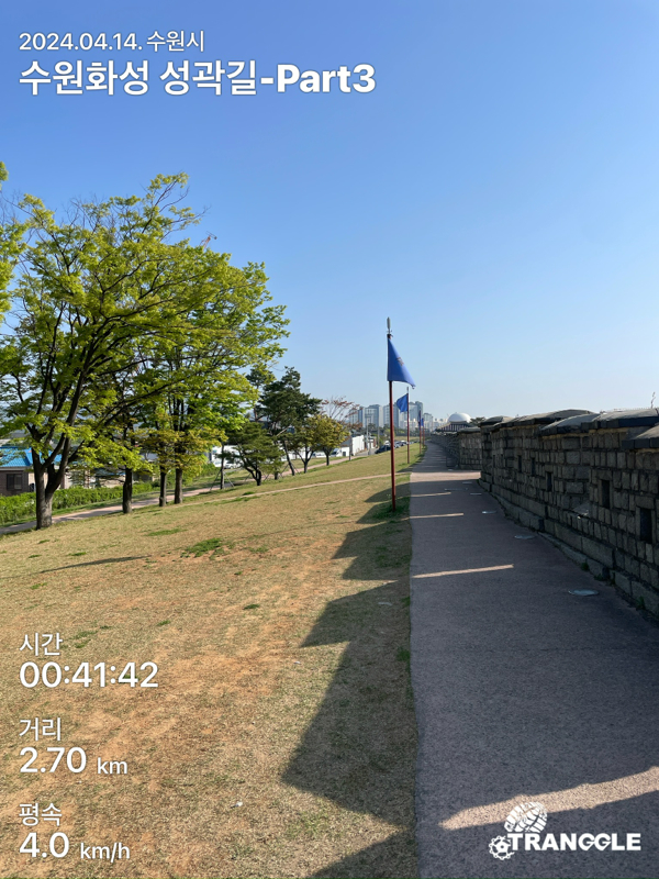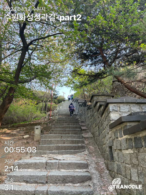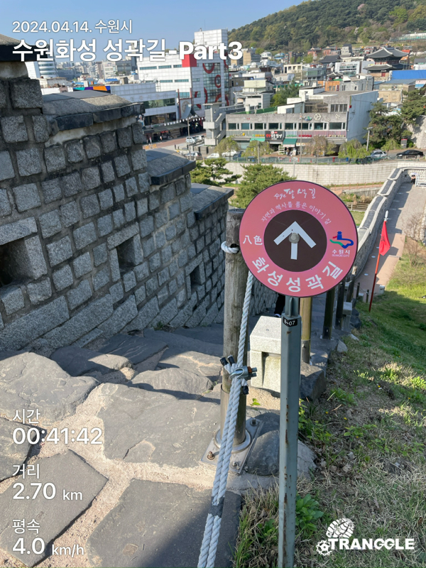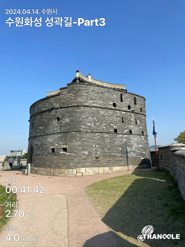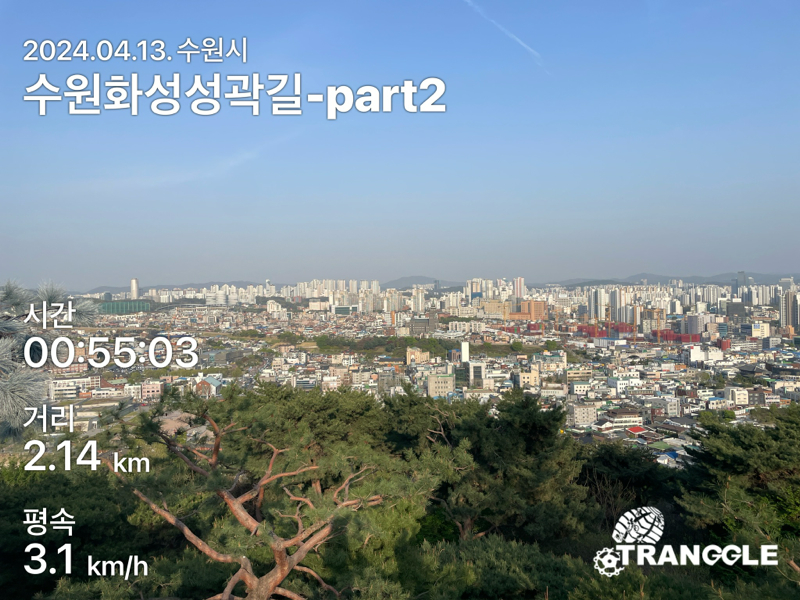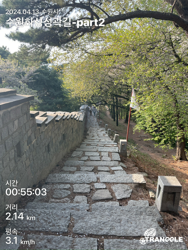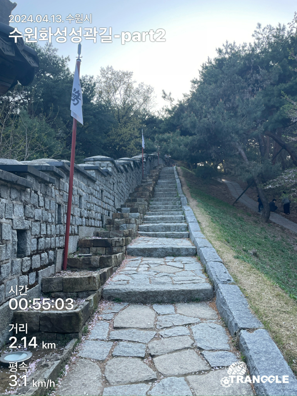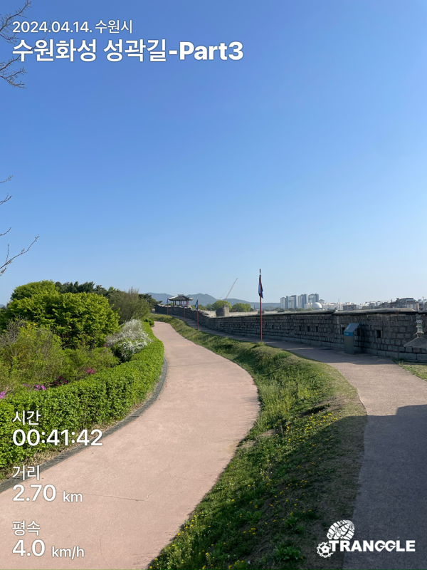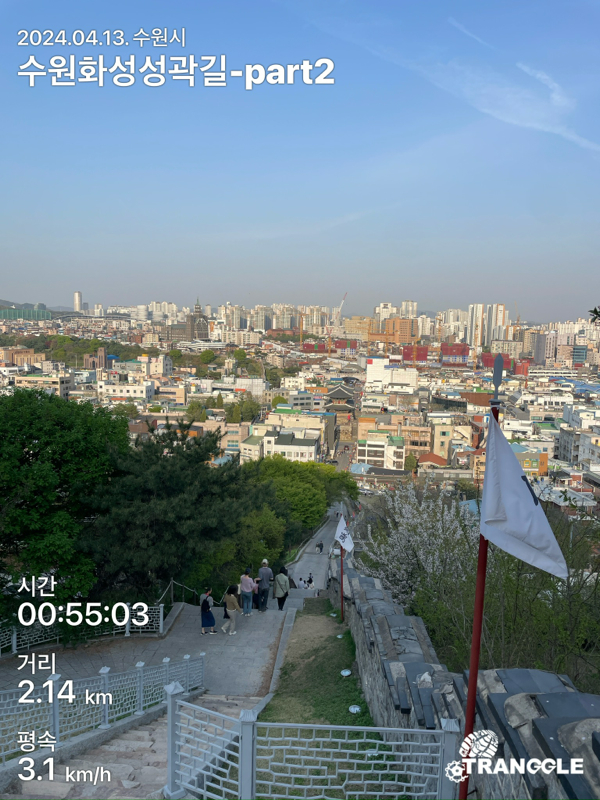 화성 성곽길을 시작하는 건 대중교통으로 접근이 편하고 또, 나중에 한 바퀴 돈 뒤에 식사나 놀러 가기 좋은 화서문이나 장안문에서 시작하는 게 좋을 거 같네요. 아, 그리고 카메라를 별도로 안 들고 가고, 휴대폰에서 트래킹 앱에서 사진을 찍었더니, 트래킹 코스르 저장할 때에 들어간 정보들이 사진에 워터마크로 남아있네요.....