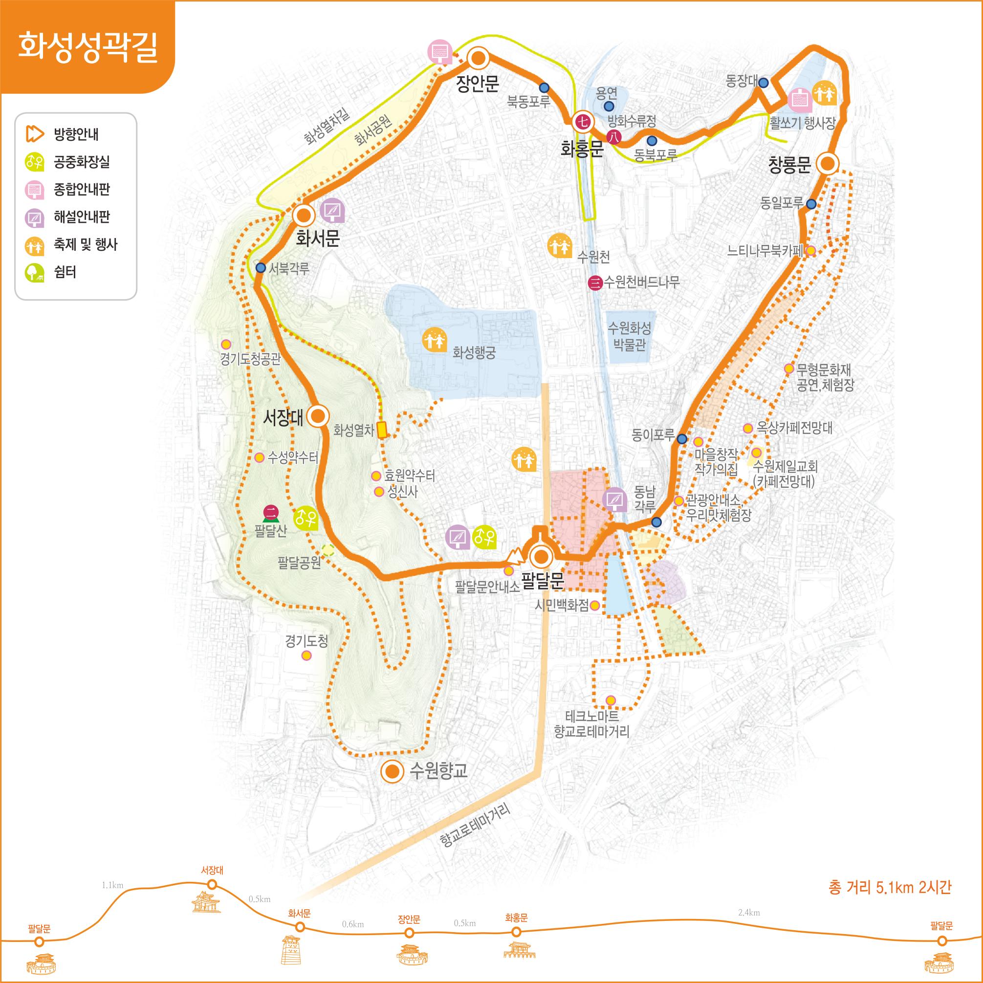 수원팔색길에서 8번째이자 마지막인 화성성곽길은 전체 코스를 이전에도 여러 번 걸어봤었고, 또 부분 부분 특히, 동장대에서 장안문을 지나 화서문까지 가는 코스는 너무 자주 다녀서.... 제게는 좀 신기하거나 새롭다는 느낌은 없는, 그냥 일상의 도로 같은 느낌인데요.... 그렇다 보니 사진도 많이 찍지도 않았고, 이미 수원화성과 화성성곽길은 사진 찍어 올린 글이 이 블로그에도 있어서... 그나마 덜 갔거나 글을 덜 올렸던 곳 위주로 사진만 올려 볼께요.