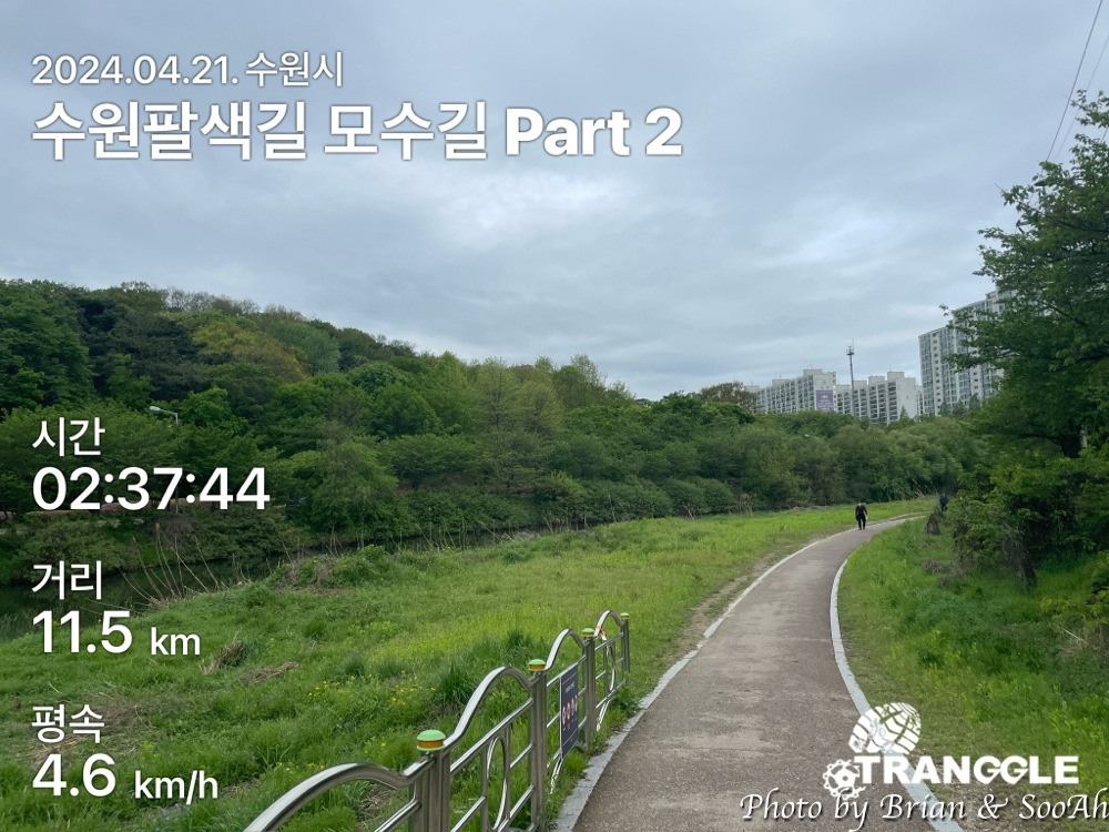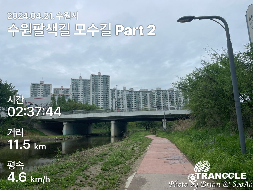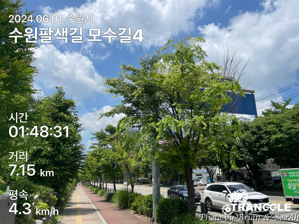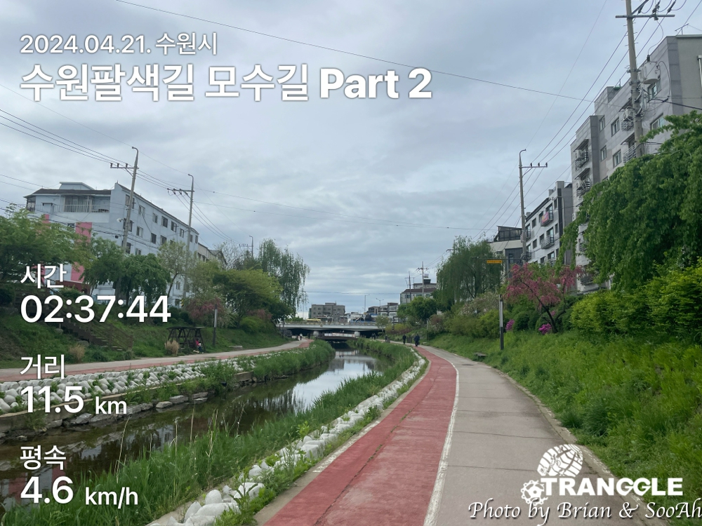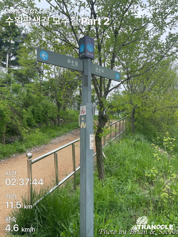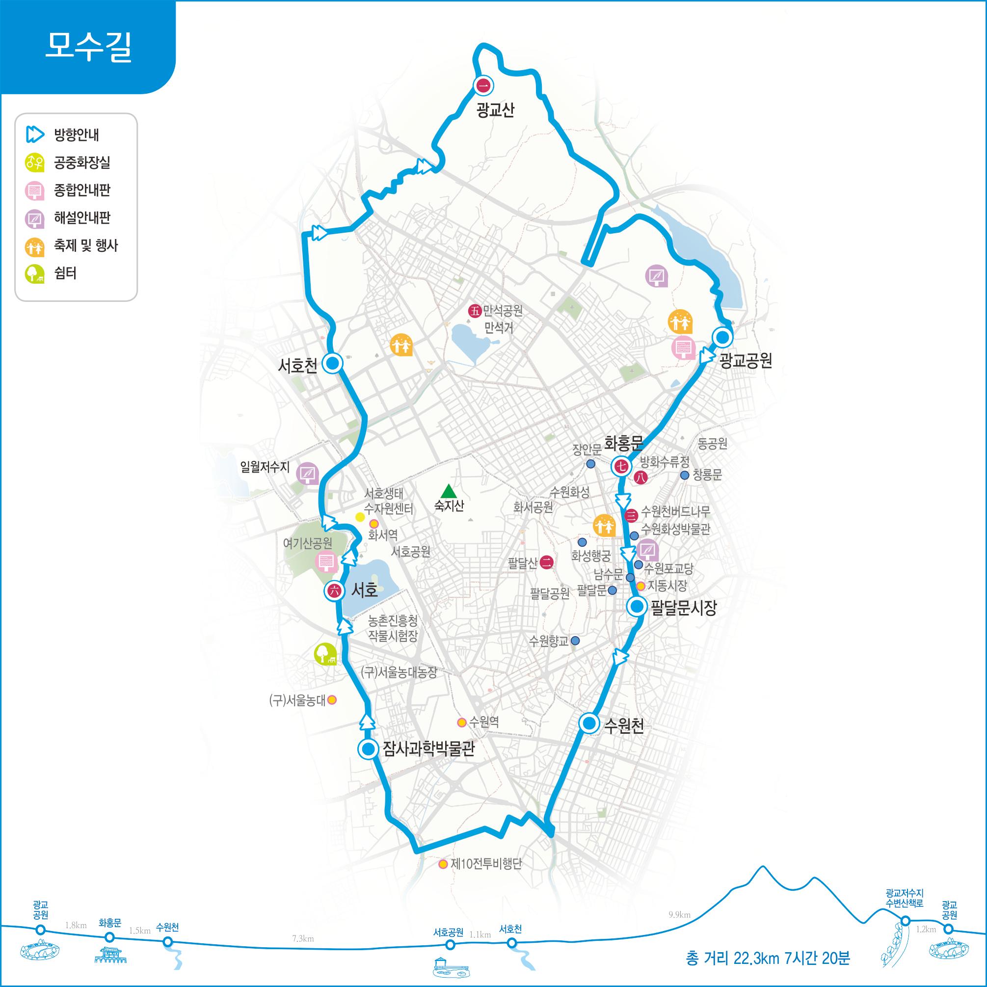 수원팔색길을 열심히 걷고 있는데, 이번에는 그 첫번째 길로 지정된 모수길입니다. 수원시 경계를 도는 수원둘레길을 제외하고는 가장 긴 길이의 산책길인데, 제가 사는 집 바로 옆으로 모수길이 지나가서 일단 거기서부터 수원천을 따라 남쪽으로 가는 방향으로 진행했습니다.
