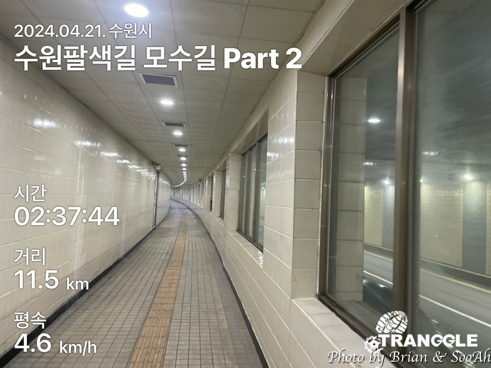 그렇게 열심히 걷다가 보면 모수길은 수원천을 벗어나서는 권선구 쪽, 수원역쪽으로 방향을 틉니다. 대로를 따라 걷다 보면, 경부선 철도를 건너야 해서 이때는 지하도를 내려가서 걷게 되더군요.