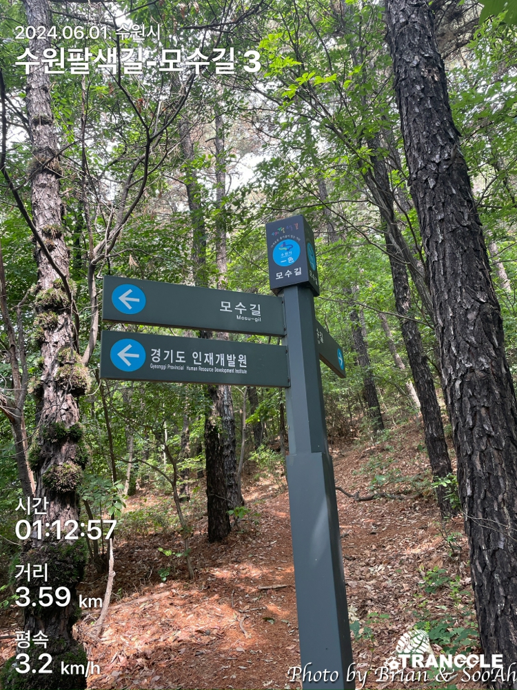 근데 여기까지 오니까 트레킹 앱이 모수길을 80% 이상 걸었다고 뱃지를 발급해주던구요... 그래서 광교산 등산로는.... 지치기도 하고 해서 여기서 그만두고 옆으로 나와서는, 모수길 트레킹을 마쳤답니다.