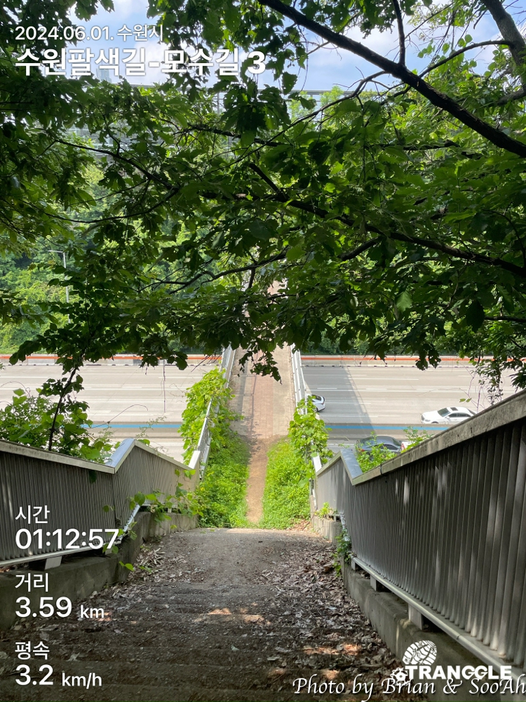 남수문을 지나서 내려가면, 효행길하고 인접하게.. 근데 효행길은 일반 차도라면, 모수길은 수원천변길이 되어서 이동하게 됩니다. 그렇게 가다 보면 수원천을 가로지르는 여러 다리 밑을 계속 지나가게 되죠.