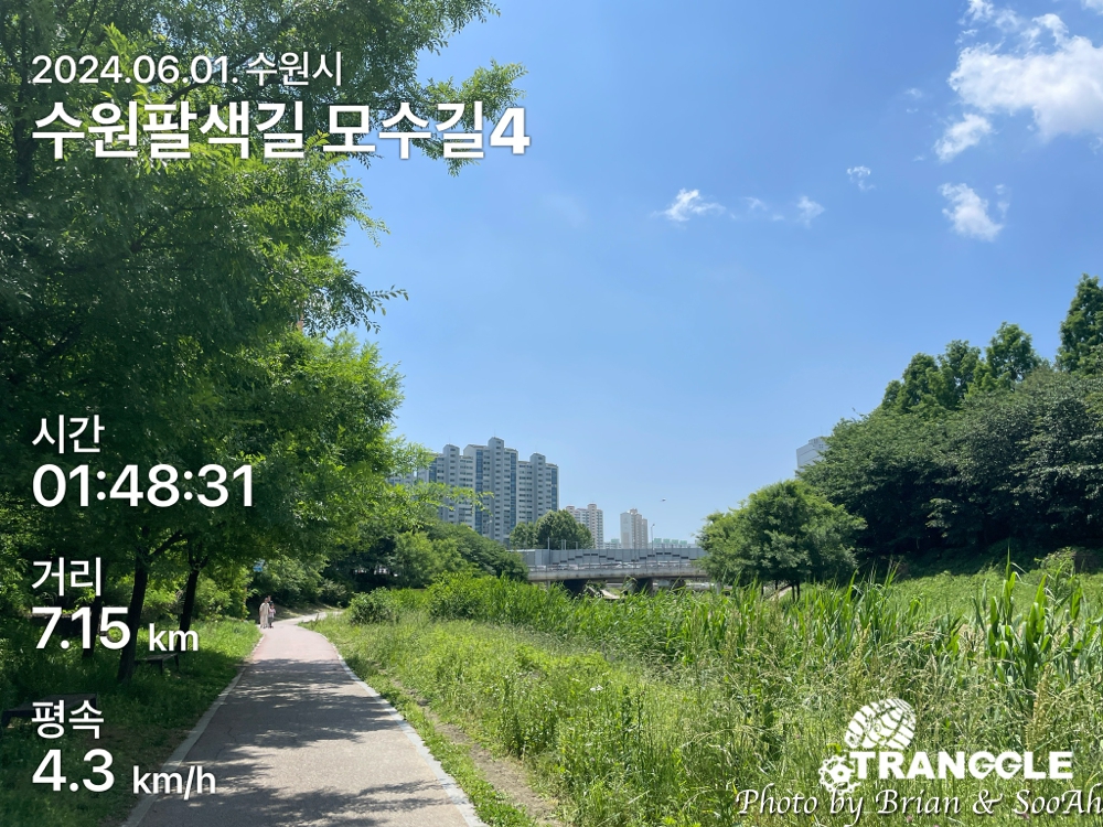 수원팔색길을 열심히 걷고 있는데, 이번에는 그 첫번째 길로 지정된 모수길입니다. 수원시 경계를 도는 수원둘레길을 제외하고는 가장 긴 길이의 산책길인데, 제가 사는 집 바로 옆으로 모수길이 지나가서 일단 거기서부터 수원천을 따라 남쪽으로 가는 방향으로 진행했습니다.