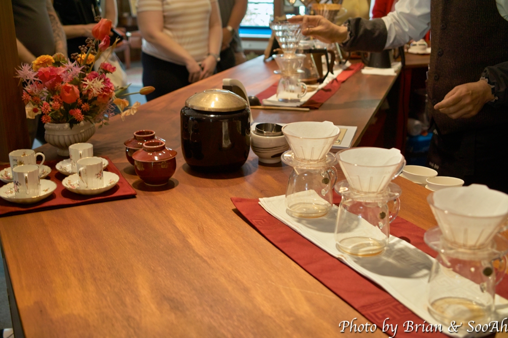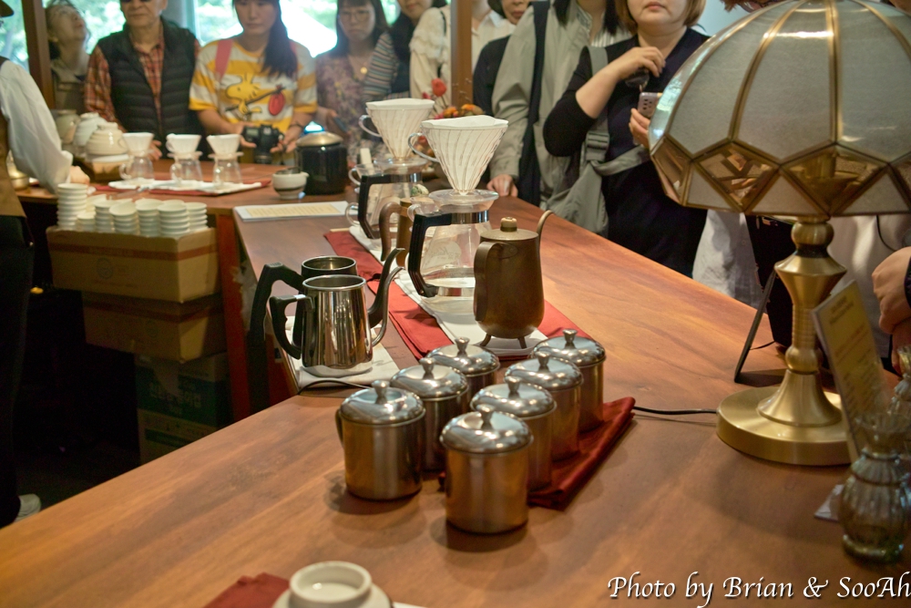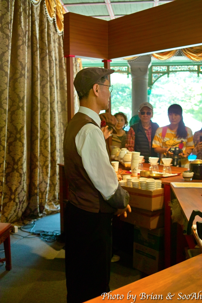 기다린 순서대로 번호표를 나눠 준 다음, 그 번호 순서대로 차례대로 입장했습니다. 정관헌 가운데에 있는 바리스타 분이 커피를 타 주는 곳이 있어서, 입장한 관람객들이 모두 그 앞에 쪼로록 서서 설명을 듣기 시작했습니다. 우리나라에 커피가 들어오게 된 이야기, 그게 고종황제가 처음이었냐....는 얘기와 고종이 즐겨마셨던 커피 품종이나 뭐 그런 얘기를 들은 뒤에, 내려주신 커피를 한 잔 씩 시음하는 시간을 가졌습니다.