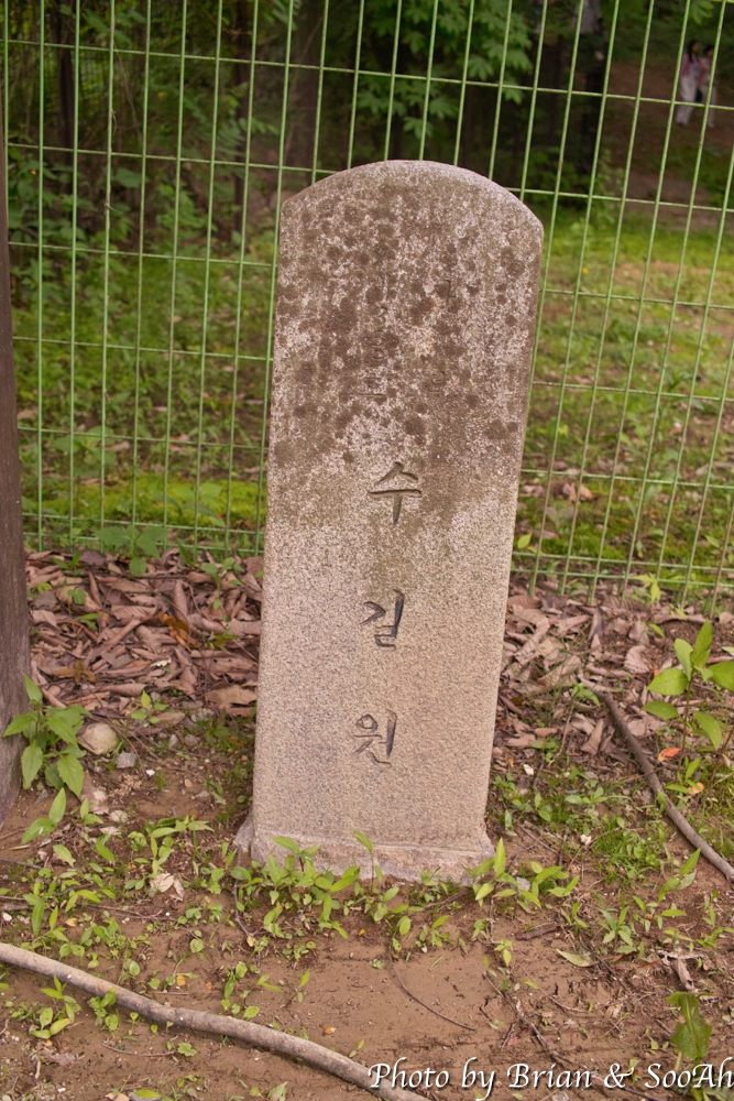 이렇게 신도비를 보고 나서는 다시 숲길을 따라서, 조금 올라가니 이번에는 가는 길 오른 쪽에 수길원이 있더군요. 여기는 영조의 후궁이자 영조의 첫 아들이지만 어려서 사망한 효장세자의 친어머니인 정빈 이씨의 묘인데요.... 뭐랄까 죽어서도 시어머니 옆이 있다니 좀 안 됐다는 생각도.... 현재, 여기는 재정비 중이어서 최근 홍살문도 다시 지어졌다고 하던데 암튼 다른 왕릉에 비해서는 많이 비어 보이긴 했습니다.