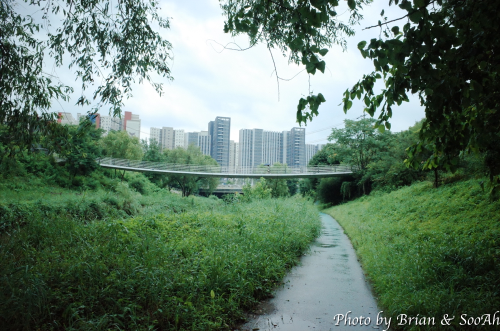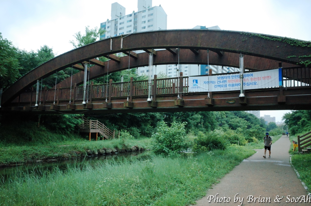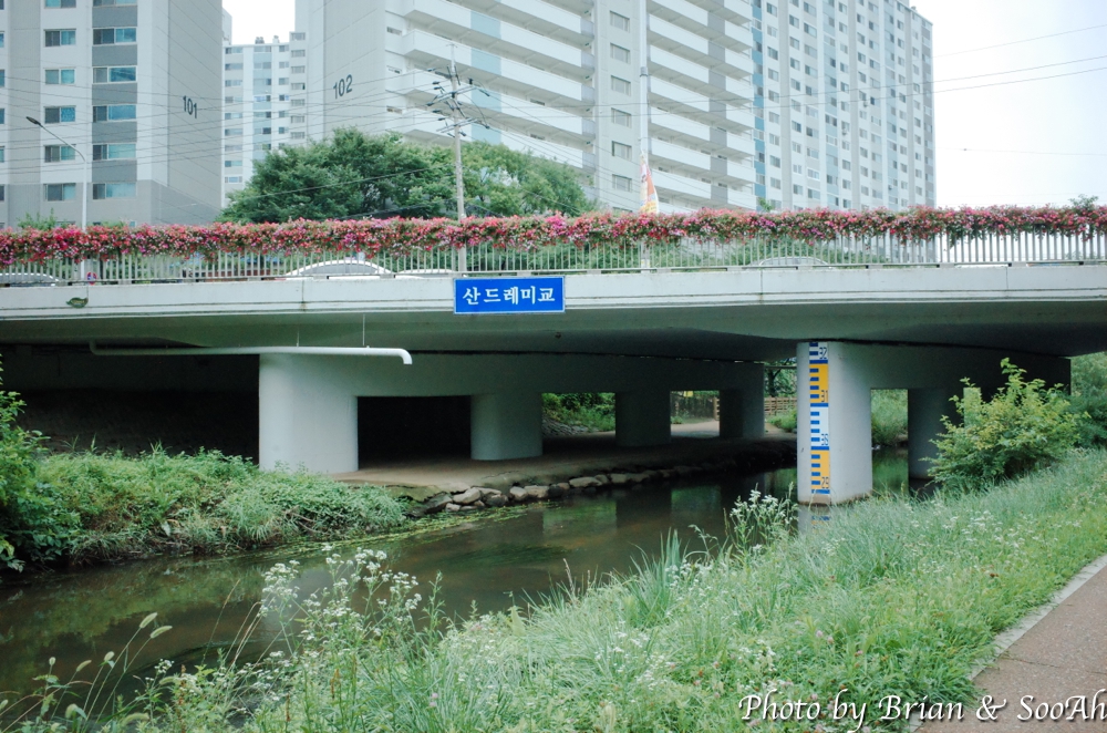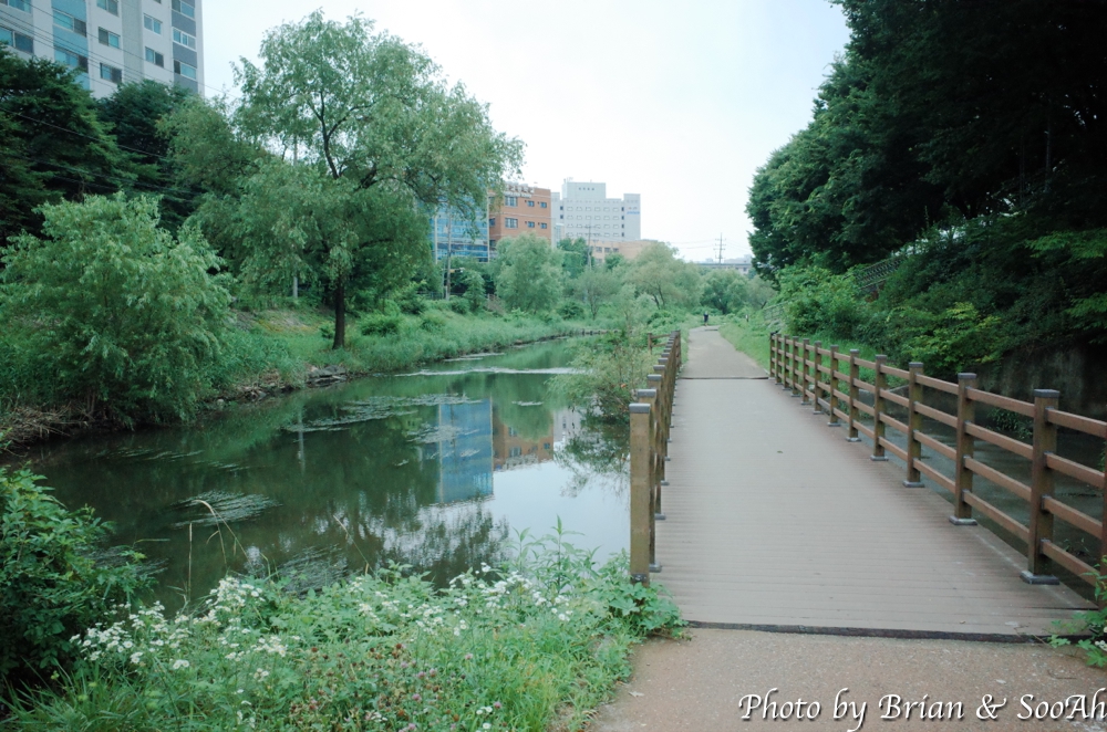 시작은 여우길과 겹치는 홈플러스 원천점 근처의 원천리천부터 시작했습니다. 원천리천을 따라 걷는데, 남쪽으로 내려가다 보니, 왼쪽에는 삼성전기와 삼성전자 사업장을 지나 신동 카페거리가 나오고, 오른쪽에는 매탄동 아파트단지들이 나오는데, 그 사이를 잇는 다리들이 정말 많이 나오더군요.