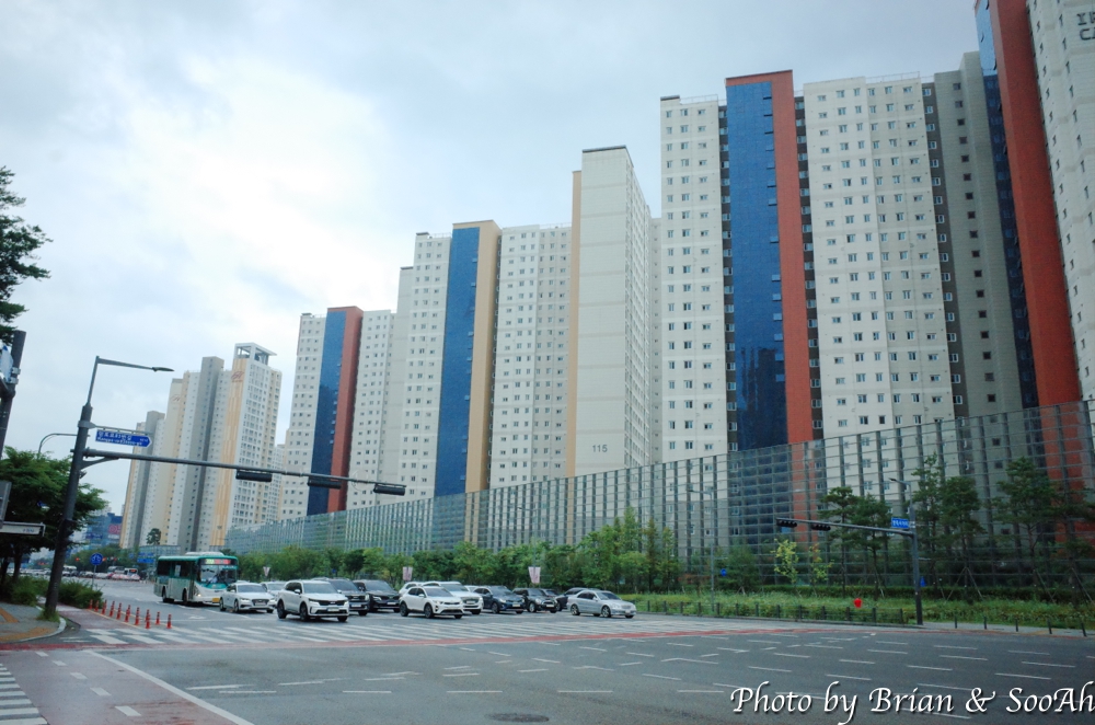 그렇게 계속 천변을 따라서 걷다가, 덕영대로랑 만나는 곳에서 옆길로 올라와서는 덕영대로를 따라 망포역 방향으로 동쪽으로 향했습니다. 여기는 역시나 큰 길에 아파트 단지들이...