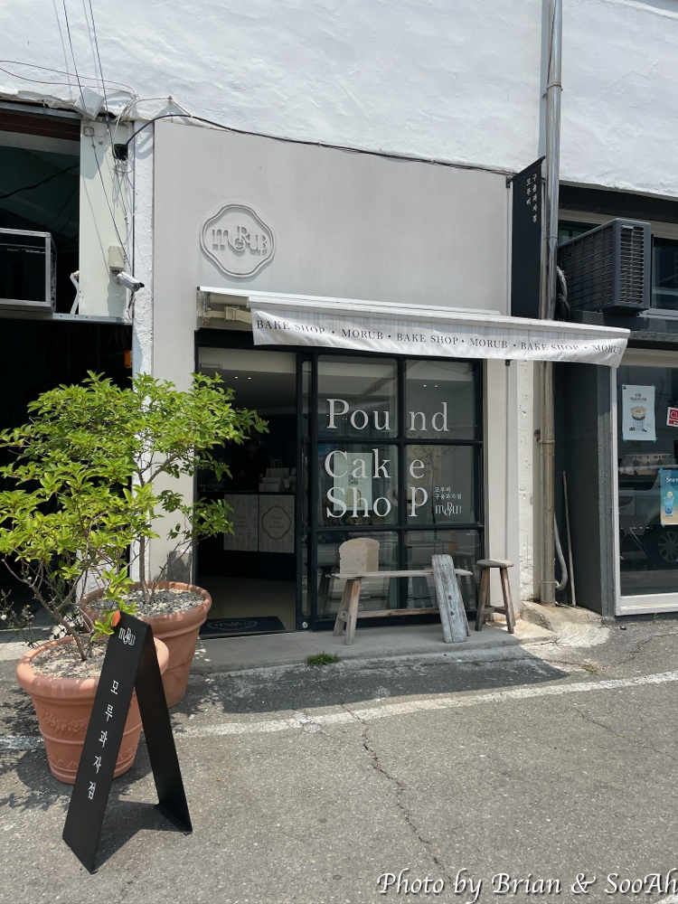 해리단길에 들어와서 가장 먼저 간 곳은 모루비라고 하는 파운드빵 맛집이었습니다. 매장에는 별도로 앉아서 먹는 자리는 없고, 바로 사서 가야 하는 그런 곳이었는데요. 조그만 파운드들이 아주 귀엽더라구요. 몇 개 사서는 Take-out을 하고는 서서히 햇볕이 뜨거워져서 근처의 커피샾으로 이동했습니다.