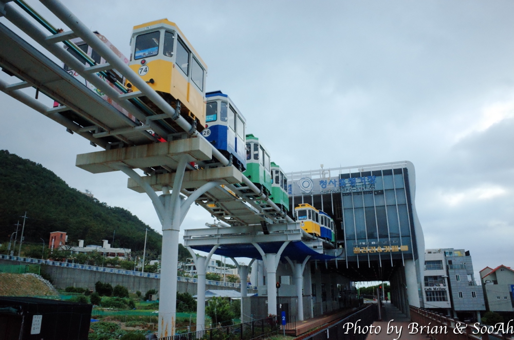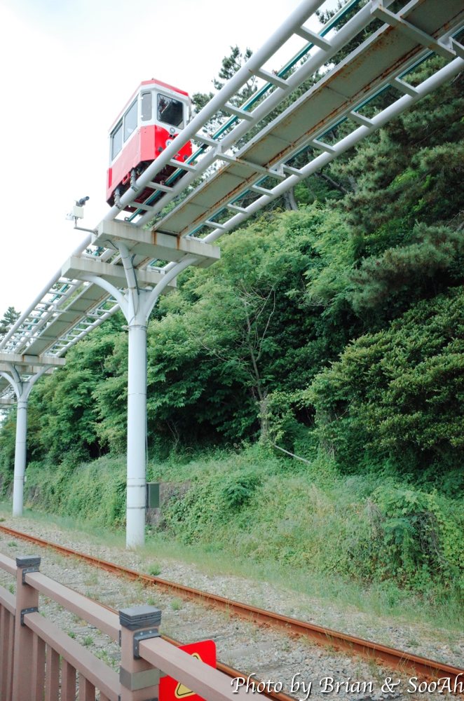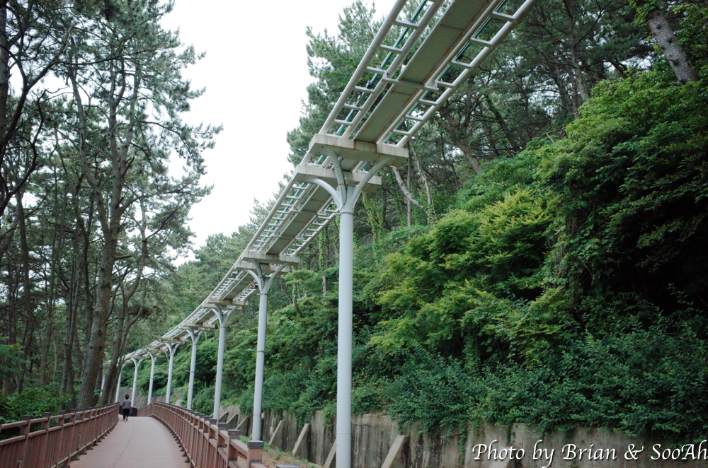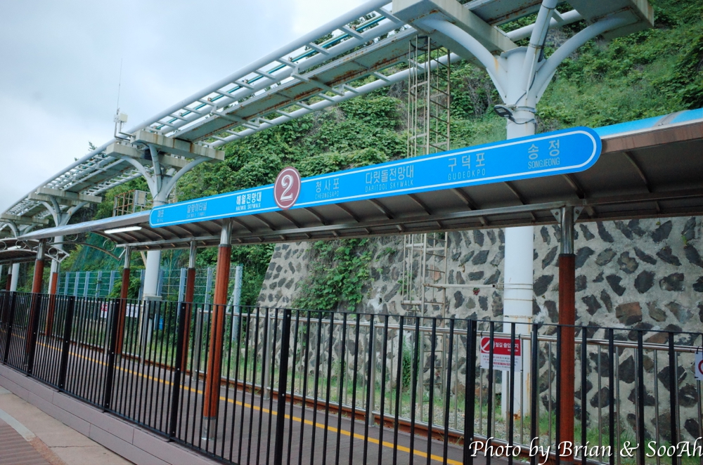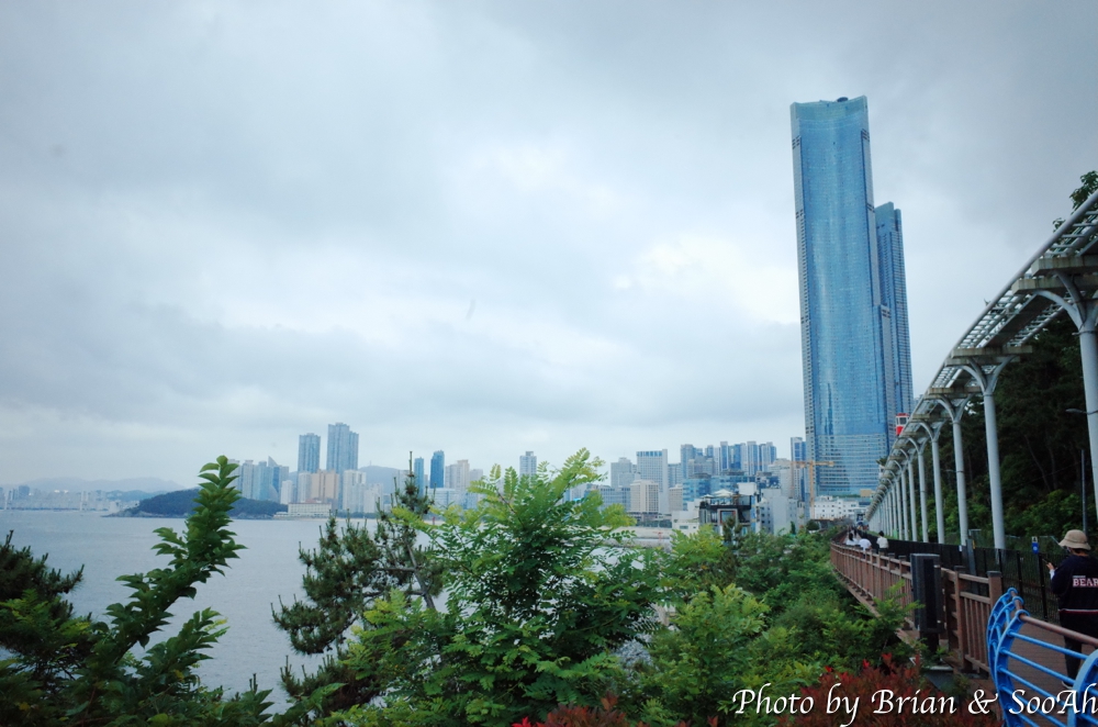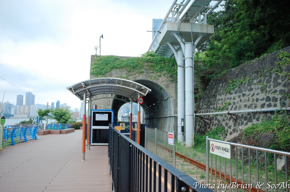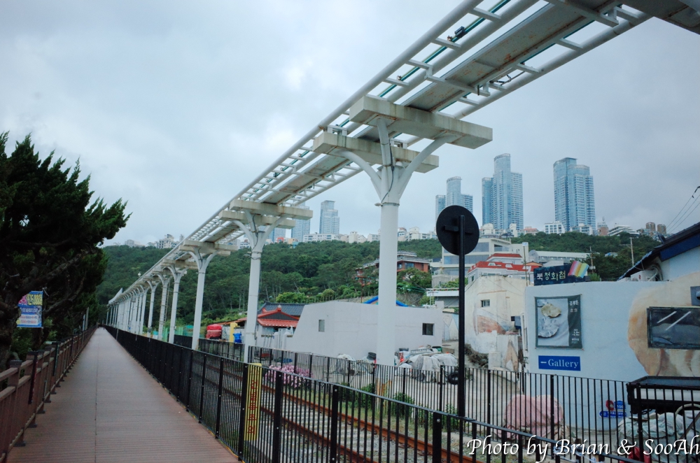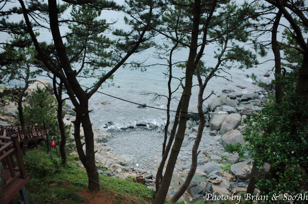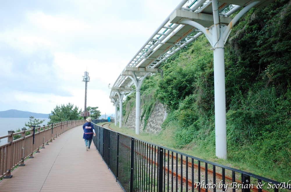 지난 번 부산여행 때는 스카이캡슐을 타고, 그 다음에는 블루라인열차를 타고 이 길을 지났었는데, 다이어트 하겠다고 여행 와서 아침에 철로 옆의 산책로를 걷게 되었네요. 스카이캡슐에서 내려보이던 달맞이고개 아래의 급경사의 숲과 돌이 가득한 해안을 좀 더 가까이서 걸으니 좀 겁나기도 하더군요. 중간 중간에 블루라인파크가 멈추는 역이나 전망대도 지나고 하면서, 망망대해와 그 너머 해운대의 스카이라인을 보는 재미도 있더군요.