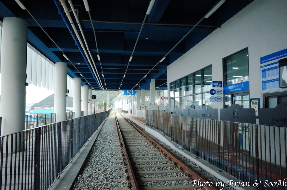 동백섬을 걷고 나서도, 왠지 전날 먹은 거를 다 소모시킬 걸음수를 채우지 못한 것 같아 좀 더 걸을까하다가, 갑자기 청사포역에서 해운대를 지나 숙소까지 걸어 오자...라는 생각이 들어서 바로 택시를 타고 청사포역으로 갔습니다. 그렇게 도착해서는, 나름 슬램덩크의 그 바닷가 철로랑 비슷하다고 알려져 있는 청사포역 옆 철로 사진을 한 장 찍고는 바로 걷기를 시작했습니다.