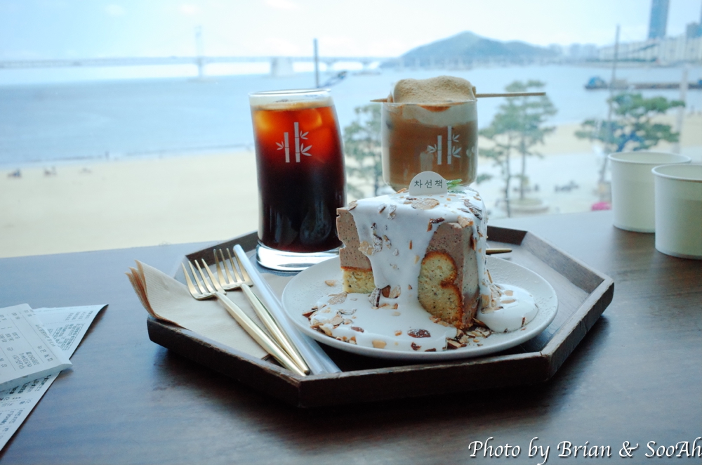 카페인이 부족하다는 느낌이 들어서는 근처 카페를 찾다가, 바다를 바라 보며 블랑킷에 누워 있는 카페를 가려다, 너무 지나가는 이들에게 구경 당하는 느낌이 들까봐, 조금 높은 곳을 찾다가 차선책이라는 카페에 들어가 봤습니다. 뭔가 한국적인 정원 느낌도 나고 하는 내부 인테리어도 맘에 들고, 여러가지 한국식 베리에이션이 있는 곳이었는데, 다행히 창가 자리가 있어서 앉아서는, 여유롭게 광안리 바다랑, 광안대교 그리고 지나가는 사람들을 바라보면서 햇볕을 잠시 피해 쉬어 보았네요.
