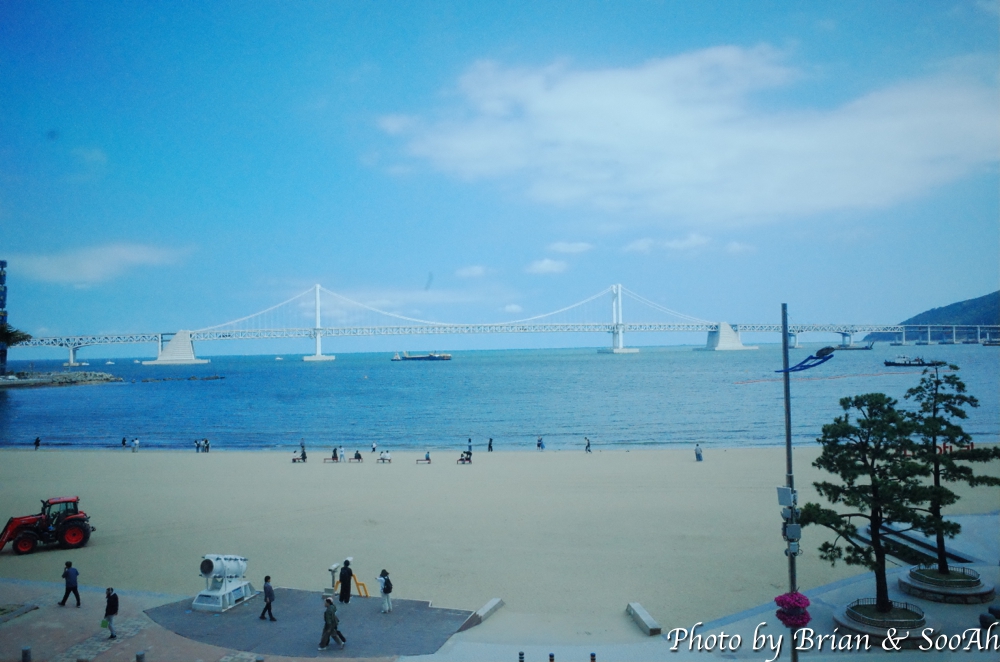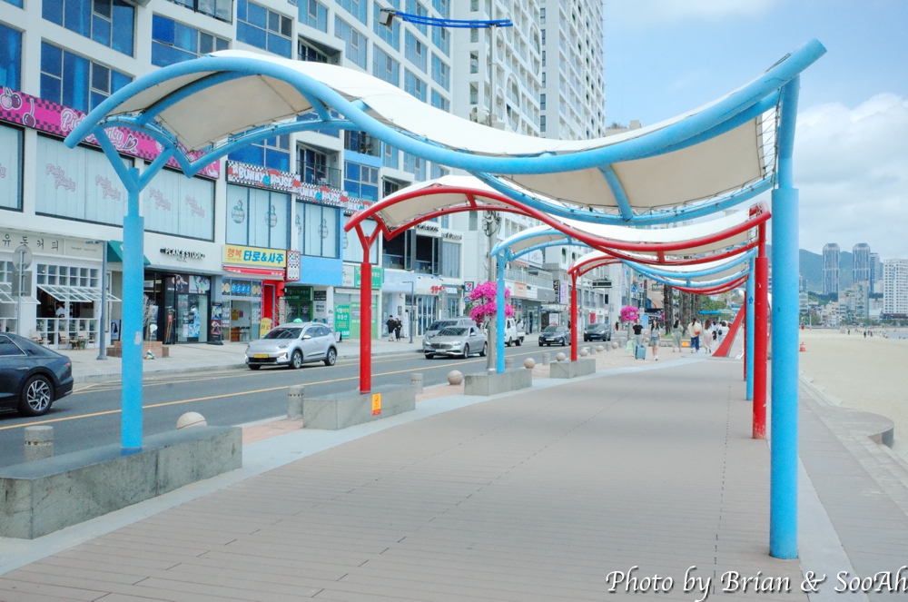 이른 점심을 먹고는 가게를 나와서는 바로 앞에 있는 광안리 해변을 걸었습니다. 평일 오전이다 보니 사람이 그리 많지 않아서 여유로이 산책도 하고, 이 때 마침 나온 포토이즘의 수삼블 프레임을 구경하러 갔다가 인생네컷 사진도 찍고 그랬습니다.