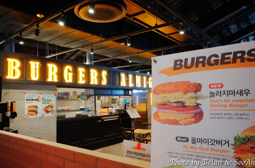 저희도 여기 앉아서 뭘 먹어보려 하다가 그냥 매장으로 들어가서 새우버거 하나를 간식 겸 해서 먹었습니다.