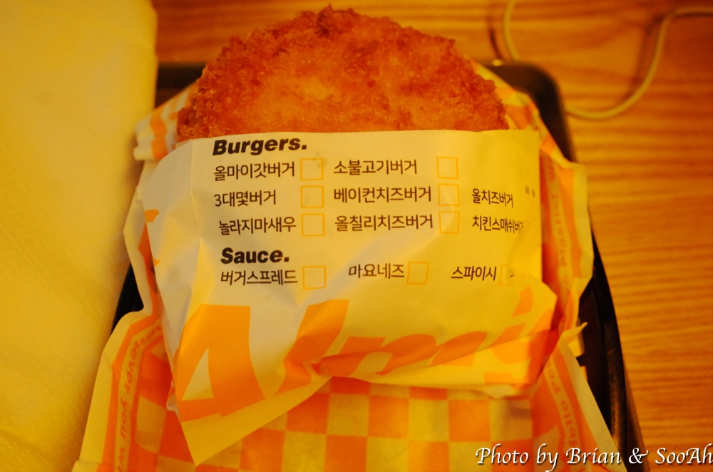 저희도 여기 앉아서 뭘 먹어보려 하다가 그냥 매장으로 들어가서 새우버거 하나를 간식 겸 해서 먹었습니다.