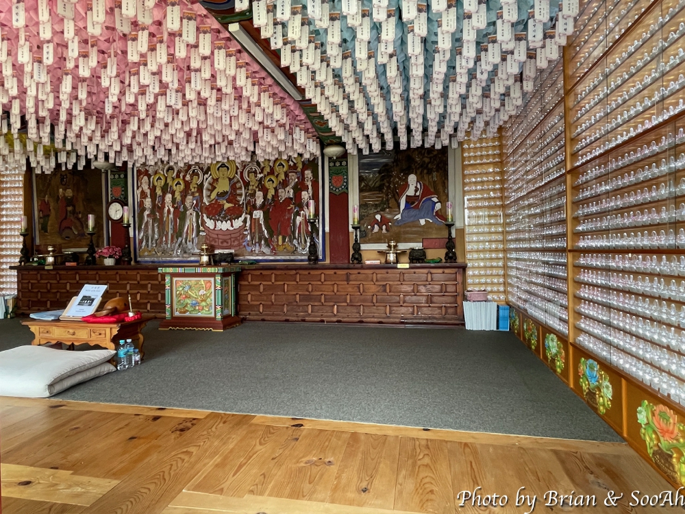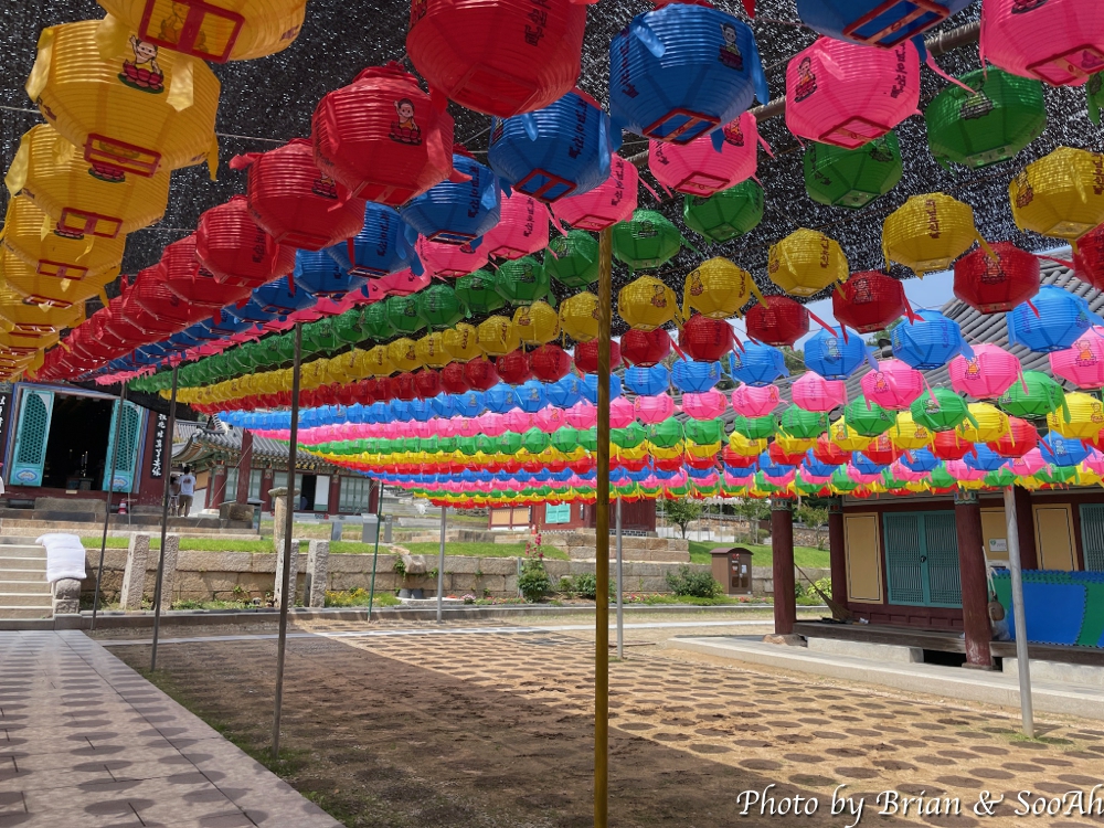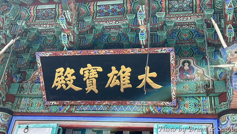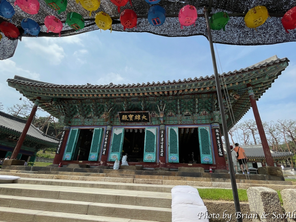 천보루 1층이자 통로를 지나서 계단을 올라가니 연등이 설치된 그늘막을 지나서 대웅보전이 나오더군요.