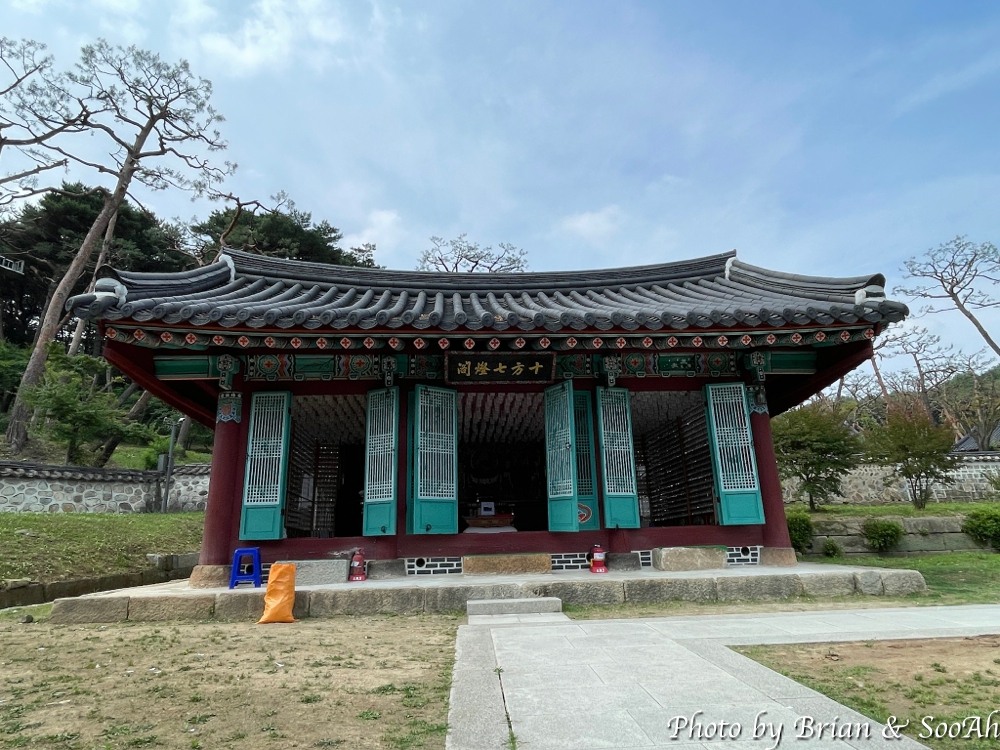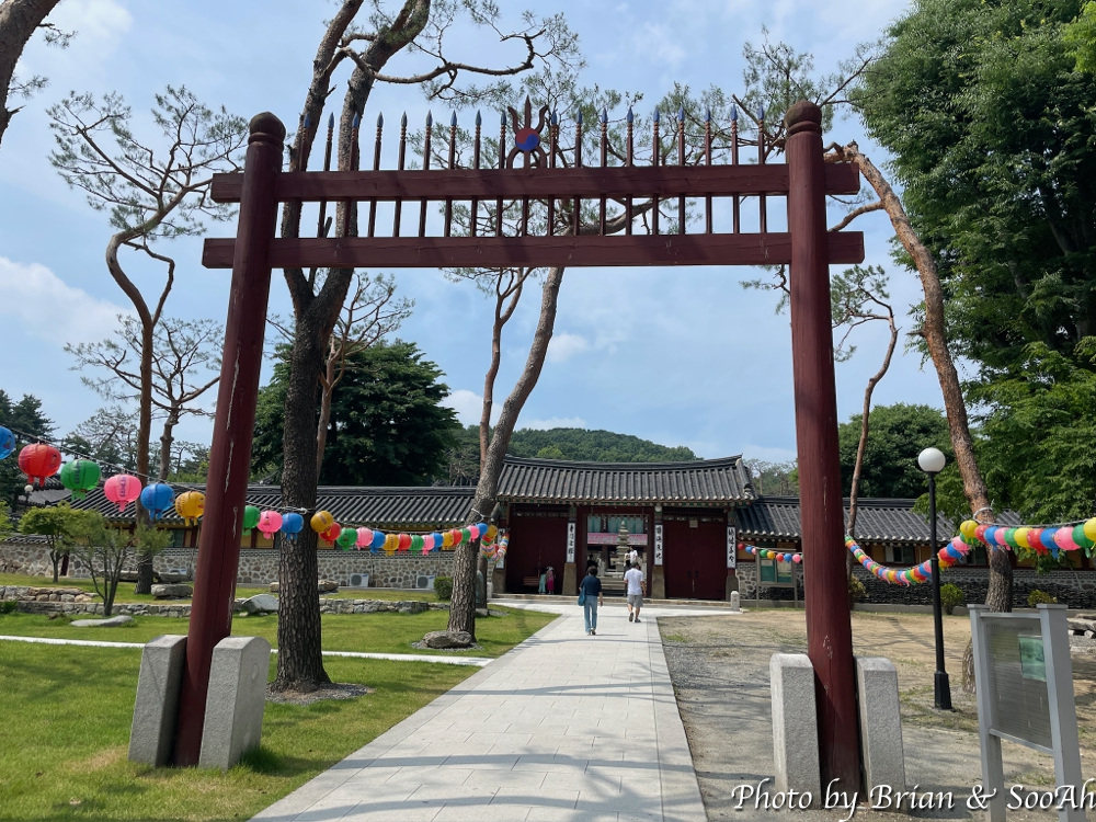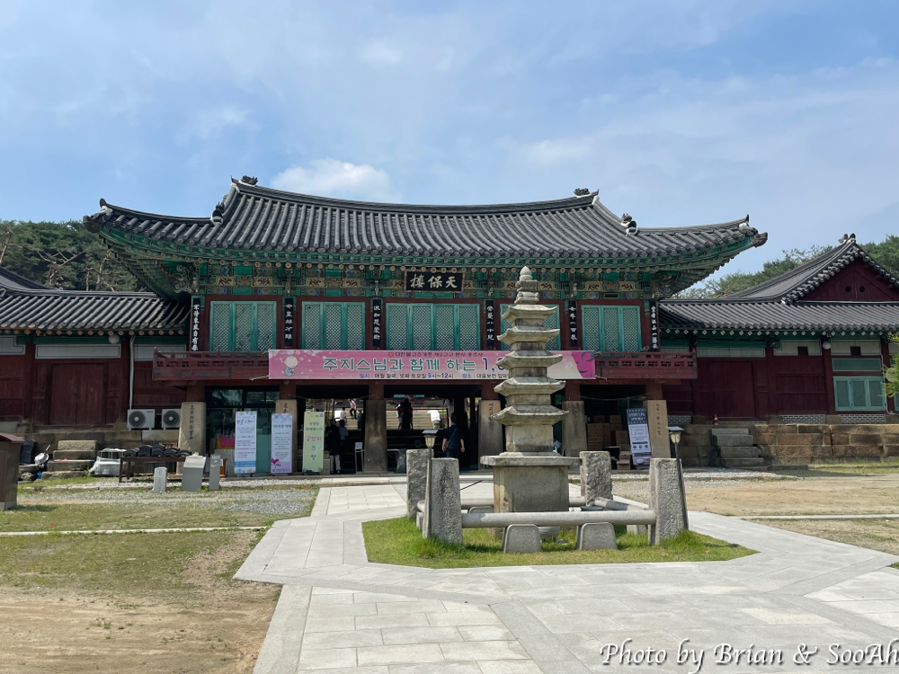 정문을 들어가면, 왼쪽에 카페 건물이 있고, 조금 더 들어가니 홍살문을 지나 경내로 들어가게 되고, 바로 왼쪽으로 효행박물관이 있더군요. 홍살문은 이 사찰에 사도세자와 혜경궁 홍씨, 그리고 정조와 효의왕후의 위패를 모시고 있기 때문에 왕릉과 같은 급이라 지어지게 된 거라 하네요.