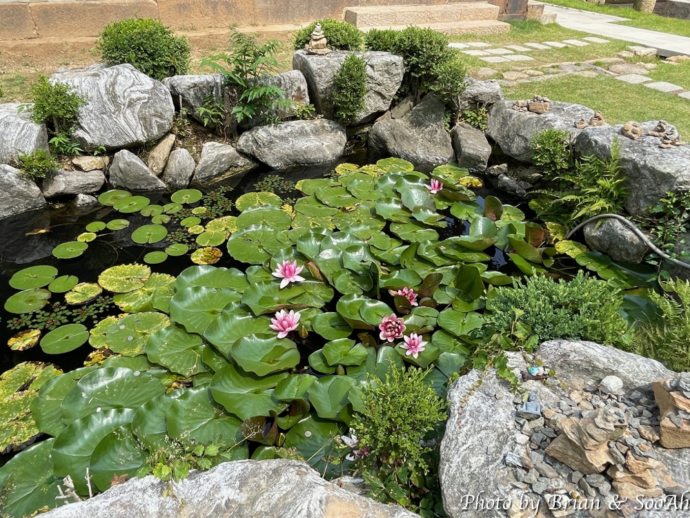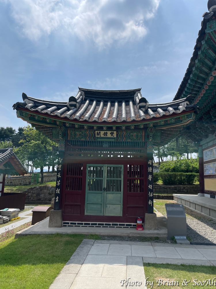 대웅보전의 좌측에는 신라시대 동종 양식을 한 고려시대에 지어진 범종이 있는 전각과 그 앞에는 연꽃이 핀 조그만 연못이 하나 있더군요.