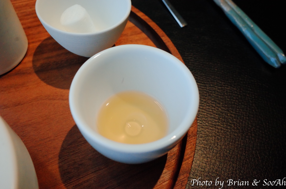 그 다음은 왕우럭조개죽이었습니다. 주먹만한 왕우럭조개를 저며서 잘게 준비해서 먹기 좋은 사이즈로 서빙되었구요, 이 조개로 만든 육수에 된장을 풀어서 죽 베이스를 만들어서 쌀과 보리를 같이 끓여서 식감을 좋게 했다고 했는데 정말 죽인데 식감이 좋은 것도 신기했습니다. 그리고 육수를 조금 더 따로 부어주시던데, 그 때 향이 정말 좋더군요.