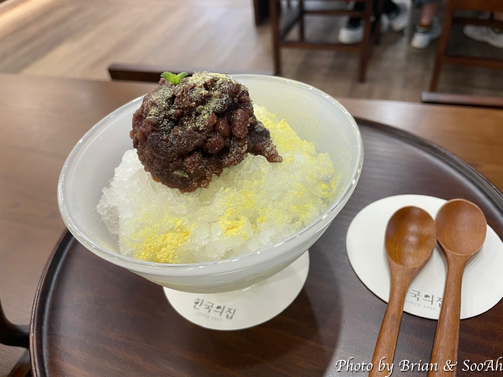 오미자차와 함께 여러 가지의 전통적인 먹을거리들이 제공되었는데, 다들 살짜기 달고 맛있었습니다. 그리고 예약할 때 추가로 신청한 참외빙수도 다과상을 다 먹고 나니 제공이 되었는데, 이것도 참 별미더군요.