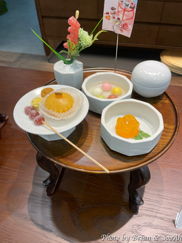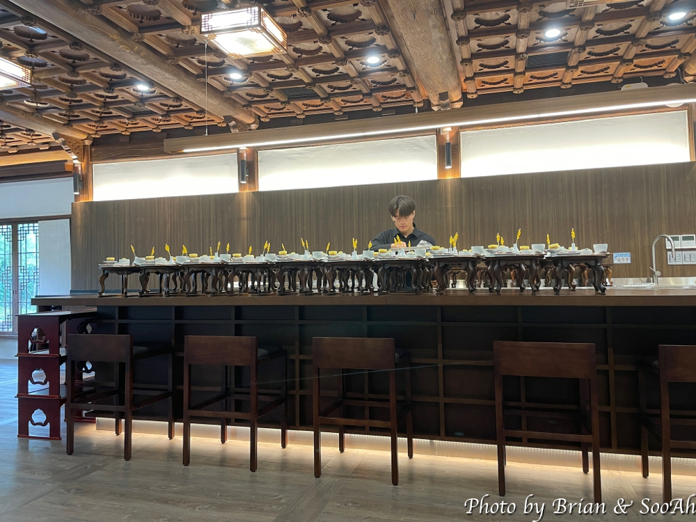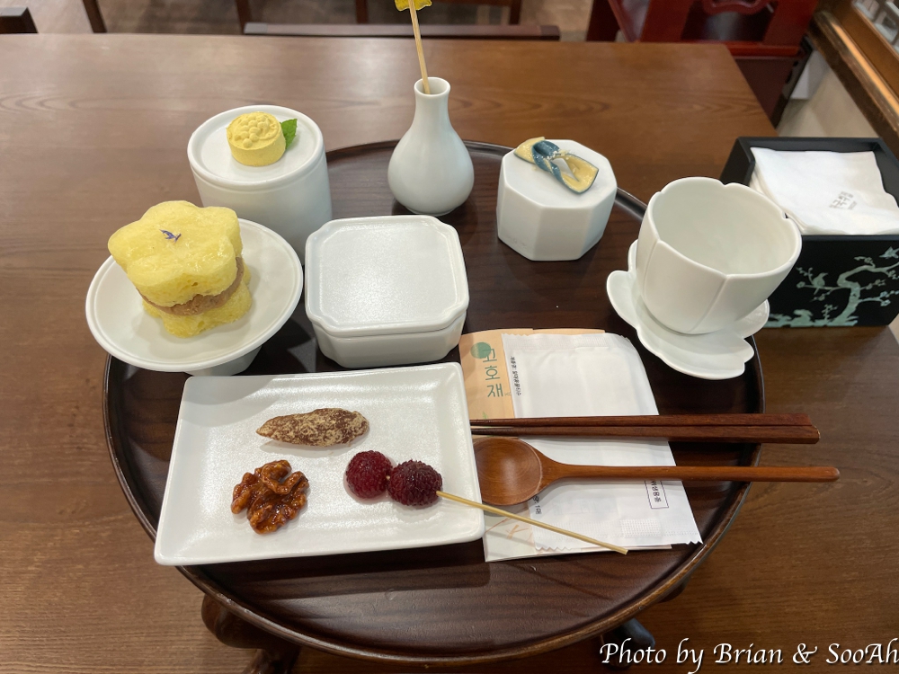 제 이름이 불려지고 안내를 받아 입장을 해서는 자리를 정하고는 앉았습니다. 그렇게 모든 예약자들이 자리를 선택하고 앉고 나니까 고전 무용을 하시는 분께서 나와서 약 5~10분 정도 공연을 하셔서 이를 관람했습니다. 관람을 하고 나니, 바로 오늘의 메인인 다과상이 입장한 순서대로 자리로 가져다 주시더군요.