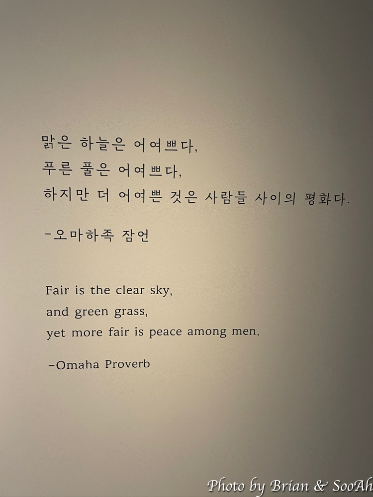 각 나라마다 만드는 방식이나 소재가 달라서, 같은 칠기지만 너무나 다른 느낌의 작품들이 있는 걸 신기해 하며 보고 나왔습니다. 그러고는 잠시 근처 카페에서 쉬고 난 뒤 뮤지엄 샵에서 쇼핑을 잔뜩 하고는, 기획전시실에서 하는 '우리가 인디언으로 알던 사람들'이라는, 북미 대륙의 원주민이었던 인디언이라 불린 다양한 부족들의 유물들이 전시되어 있었는데.... 유물들도 눈길이 갔지만, 그들이 남긴 말들에 많은 울림을 느꼈던 하루였습니다.