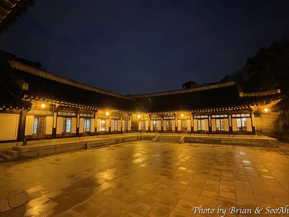 와인이나 플레이트는 추가로 주문하면 더 먹을 수 있지만, 일단 이 정도만 가볍게(?) 즐기면서 즐거운 시간을 보냈구요. 그렇게 먹고 나오니 이미 어두워진 한국의집의 모습을 사진에 남길 수 있었네요.