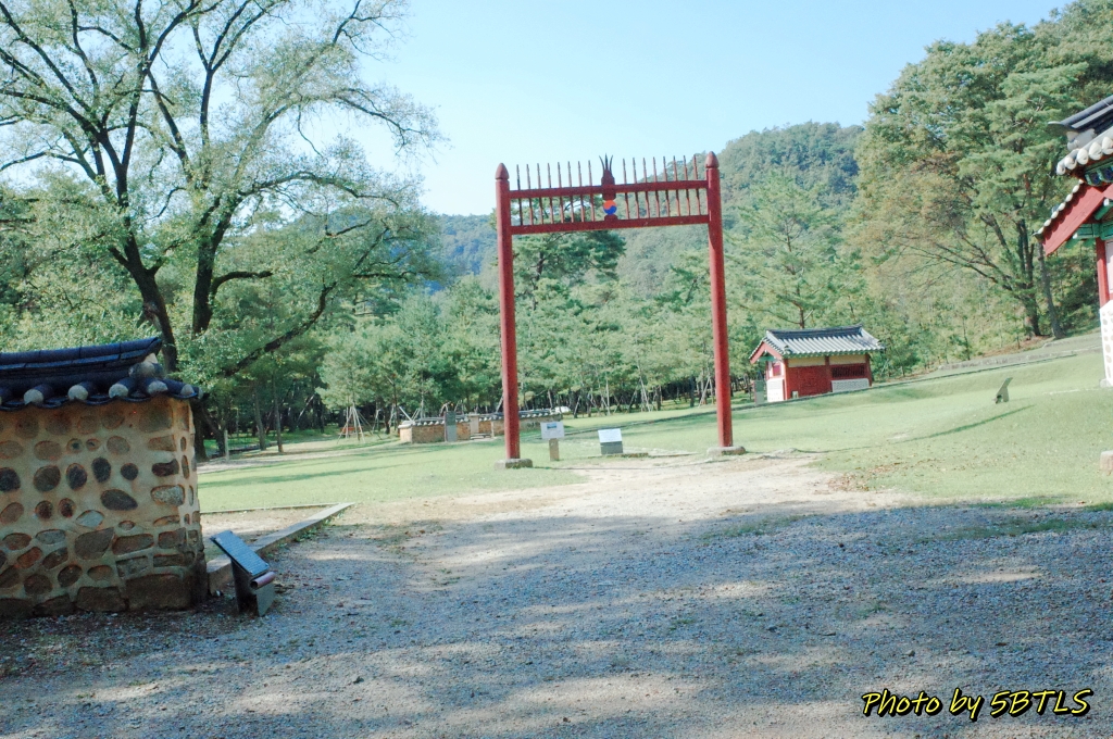 언덕에서 내려와서는 아래쪽 능침을 제외한 다른 전각/건물이 있는 곳으로 이동했습니다. 아래처럼 홍살문이 있는데 능침은 보이지 않고, 고목이 그 앞에 보이고, 홍살문을 지나면 신도는 오른쪽으로 꺾여서 바라 보면 정자각과 부속 전각이 보입니다.