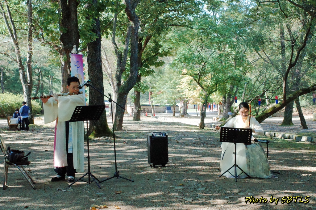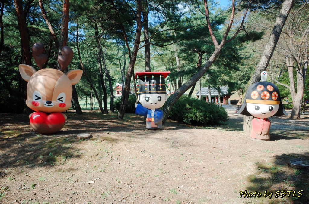 그렇게 왕릉과 관련된 전각/건물들을 보고는 왕릉천행의 마지막 행사인 국악 공연을 1~20 여분 봤습니다. 그리고, 장릉으로 가는 길에서 개울물을 건너 있는 쪽에는 숲길과 연못도 있고, 또 단종과 정순왕후를 귀엽게 만들어 둔 대형인형도 있더군요.