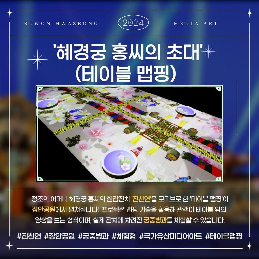 이번 미디어아트 행사 중에서는 3개의 사전 예약 프로그램이 있었는데, 이후에 설명할 화서문 미디어아트의 지정관람석이랑, 이를 포함한 미디어아트 가이드 투어, 그리고 이 글에서 설명할 '테이블 매핑 - 헤경궁 홍씨의 초대', 이렇게 3개였습니다.