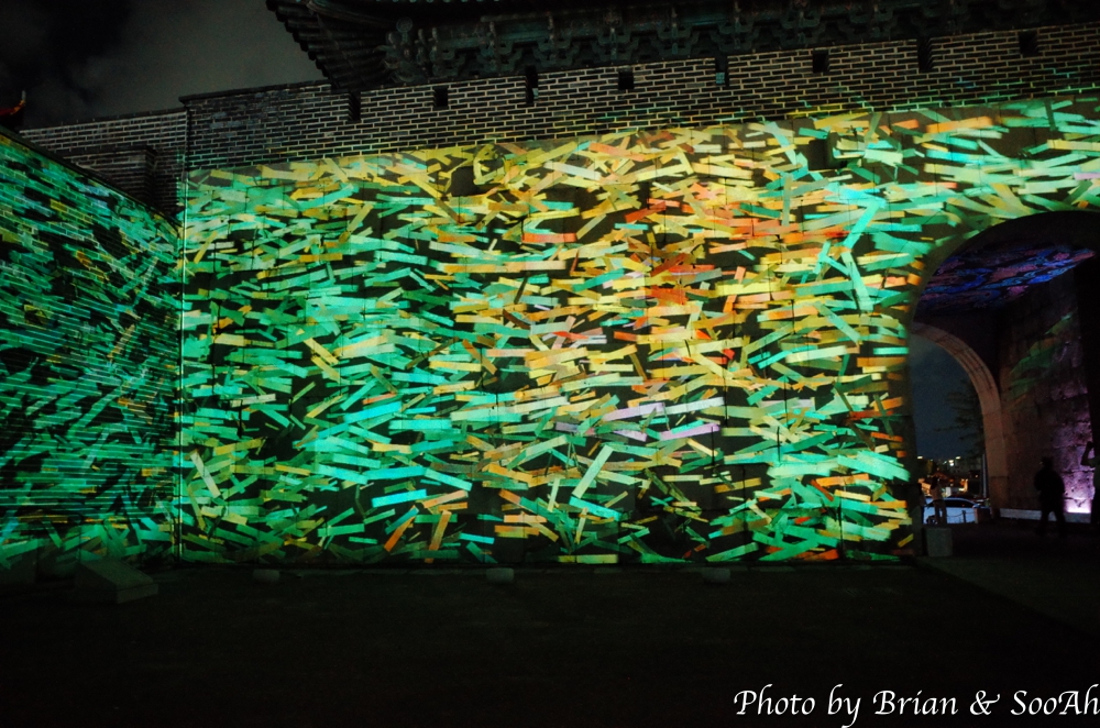 돌아오는 길에 들린 장안문에서 진행되는 미디어아트도 잠깐 들러서 봤습니다. 약 5분 정도 진행되는 미디어아트가 2개가 진행되었는데, 장안문의 옹성 안 공간을 활용하는 게 요즘 CGV의 Screen X를 보는 거 같은 느낌이더군요.