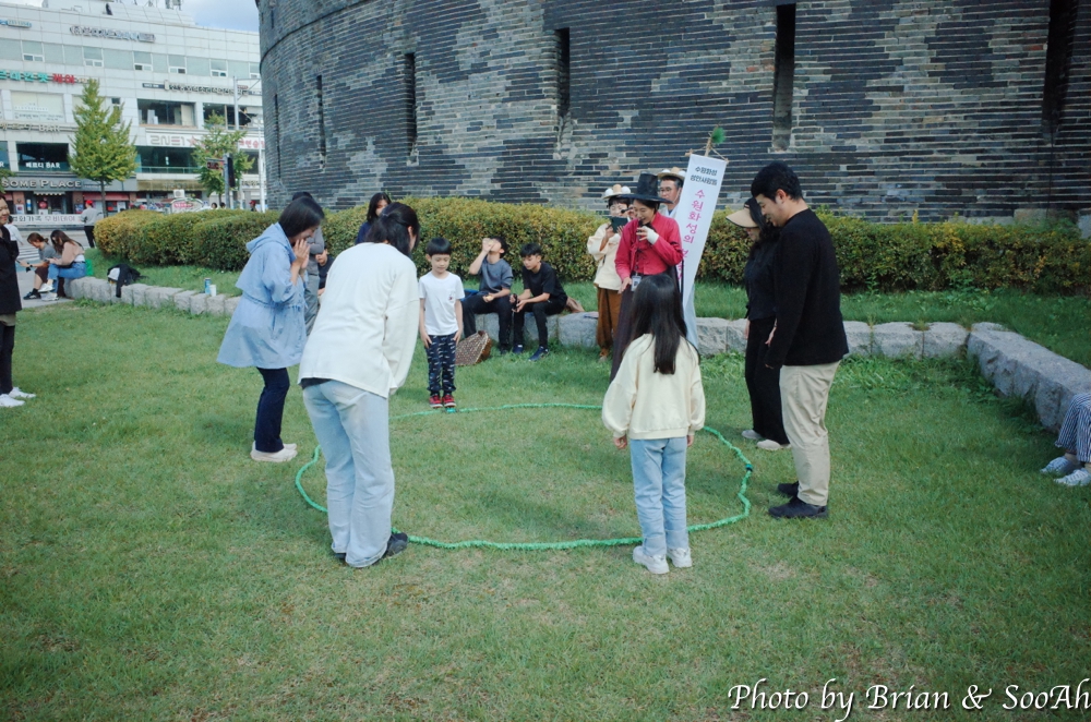 장안문까지 와서 일단 이동할 것은 다 끝낸 투어는 마지막에 장안문 바깥쪽 잔디밭에서 인/아웃 게임을 했는데, 투어에 참여한 아이들이 너무 즐거워 하고, 저도 오랜만에 이렇게 여러 사람들이랑 게임을 했던 거라 나름 재밌게 투어를 마칠 수 있었습니다.