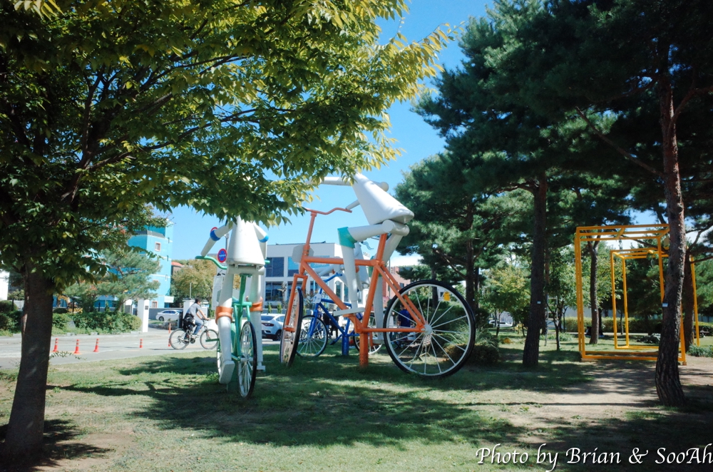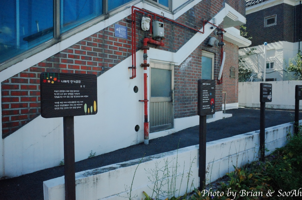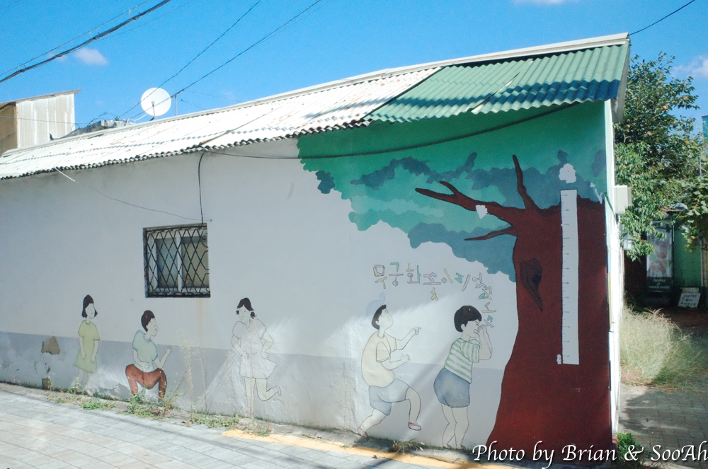 마을에 벽화를 그리면서, 그 곳에 사시는 할머님의 젊은 시절 자전거를 타던 사진을 그렸다는 얘기나 누가 서던 무조건 키가 커지는(측정하는 자?가 실제 높이보다 더 낮게 있어서..) 벽화 얘기. 빗물을 받아서 집 둘레로 나무들을 키울 수 있도록 지원해줬던 이야기. 그리고, 마을 사람들이 전부 잘 지내라는 의미로 집 앞에 '안녕하세요'라는 글귀와 동물들을 각각 각기 다른 동물과 언어로 해서 나무명패를 걸어뒀다는 얘기, 그리고 수원문학인의 집 이야기 등등이 기억 나네요.